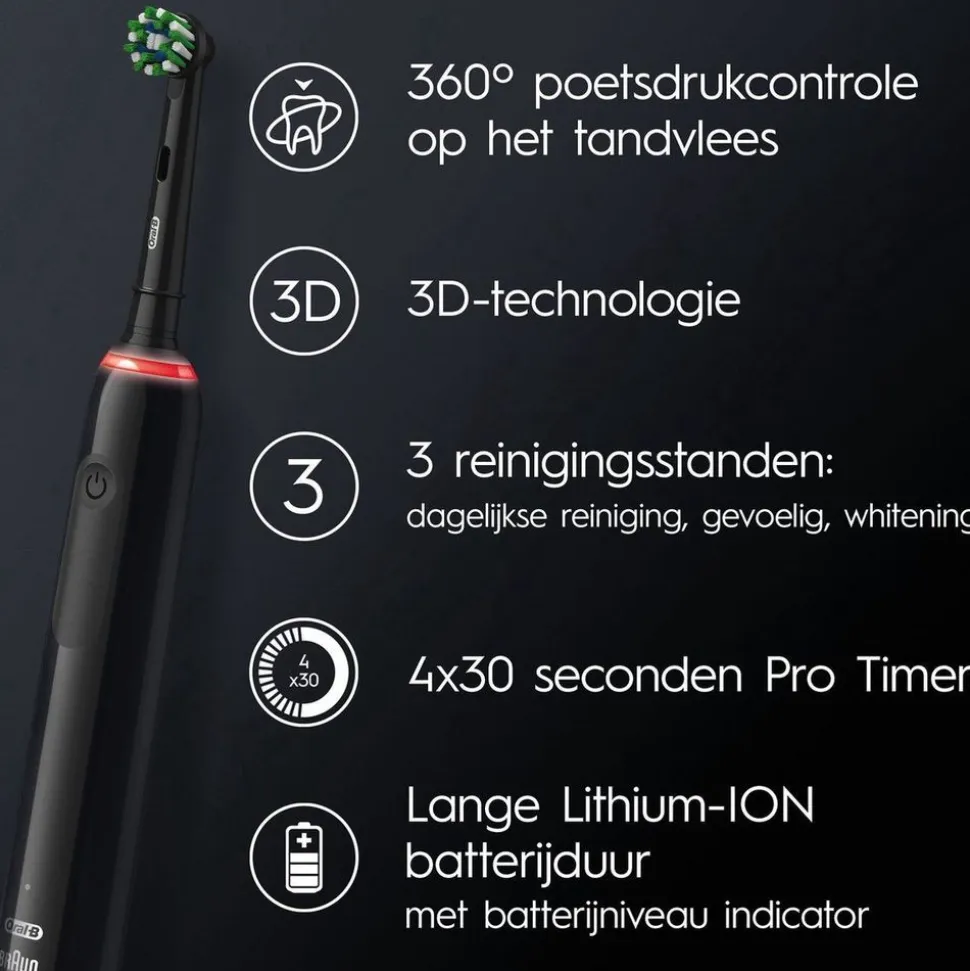 De voordelen van de Oral-B Pro3 3000 Cross Action Elektrische Tandenborstel: