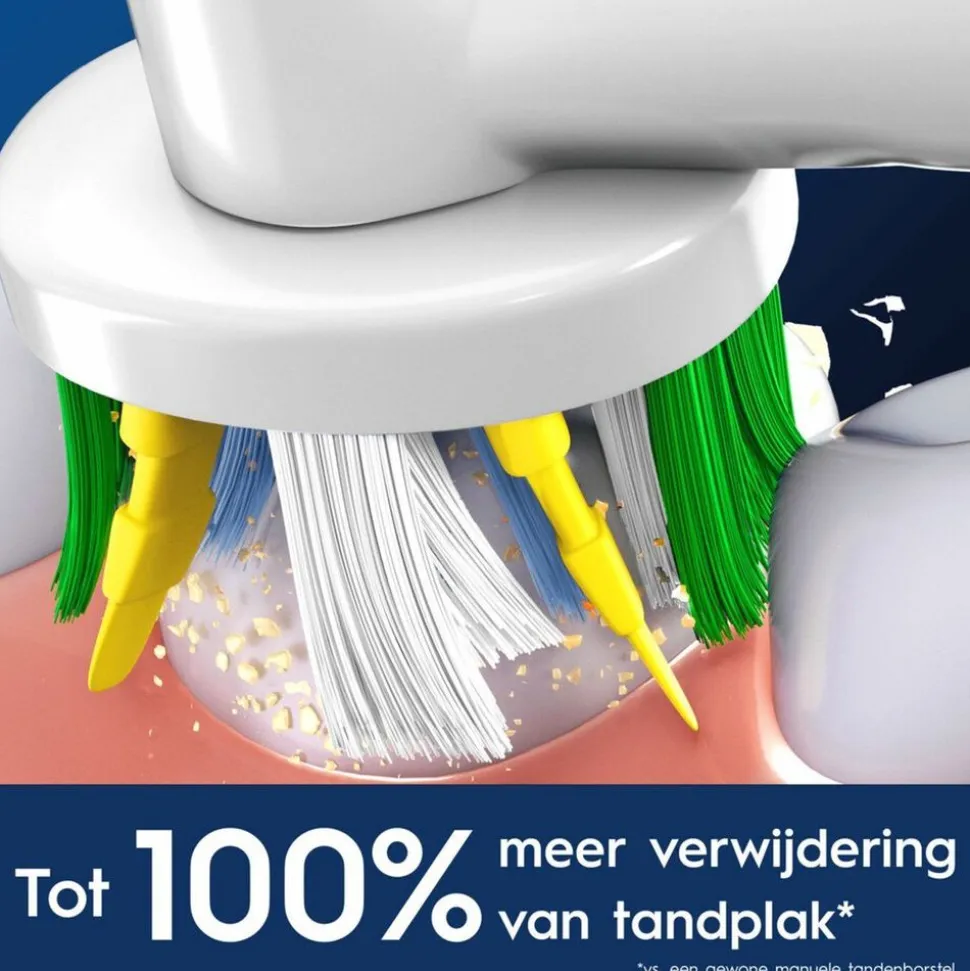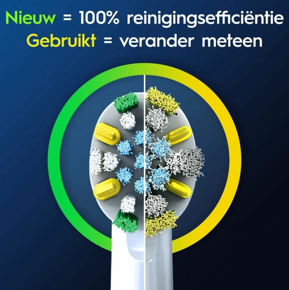 - Alleen echte Oral-B opzetborstels hebben X-vormige borstelharen die reinigen op plekken waar gewone borstelharen niet bij kunnen voor een optimale reiniging