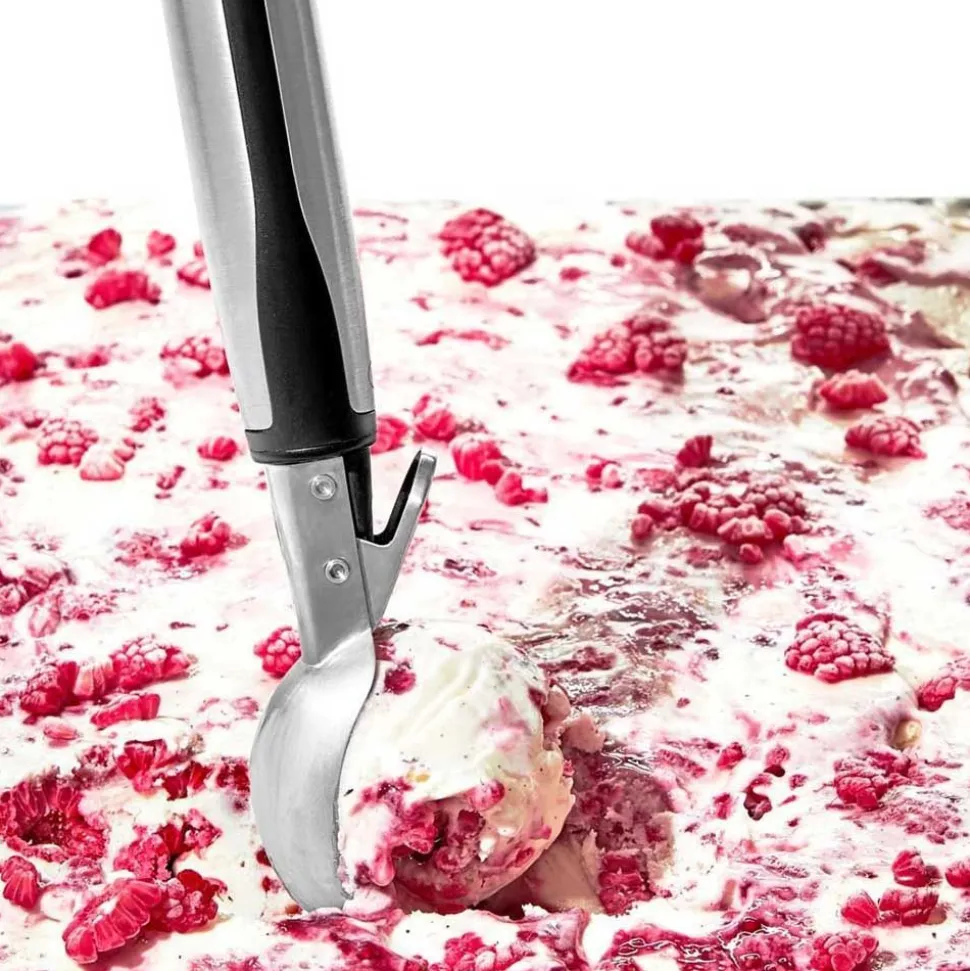 Met de OXO RVS IJsschep schep je eenvoudig mooie bollen ijs. Je houdt hem bij de comfortabele, zachte greep vast. En je schept een schep ijs uit de bak.Â