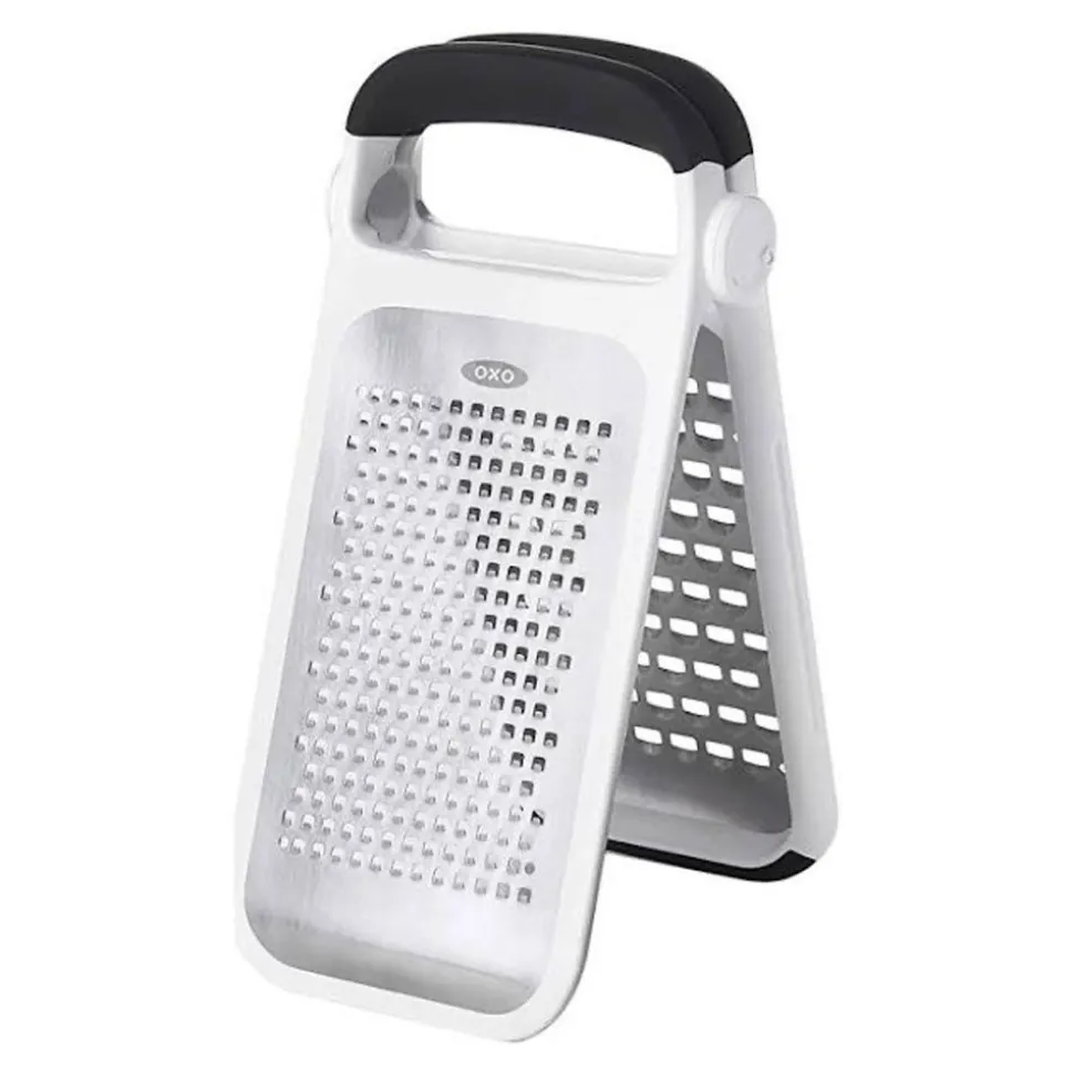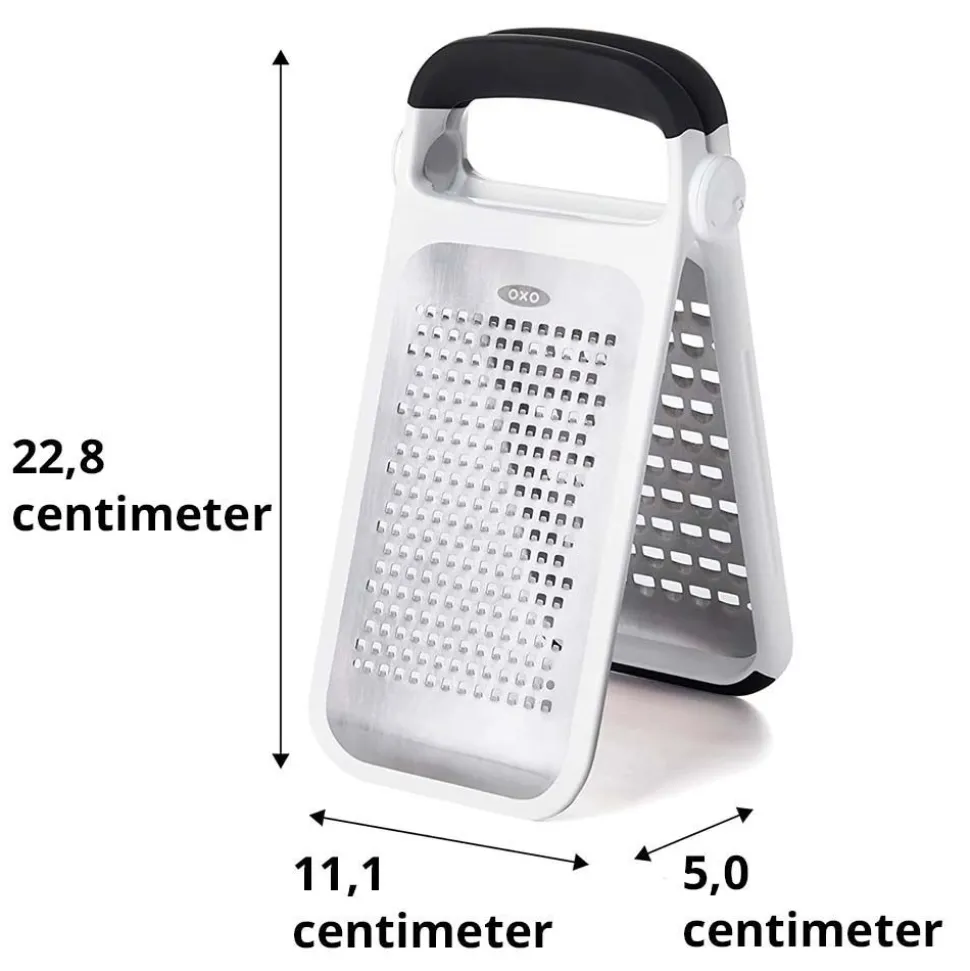 Met deze vouwbare rasp van OXO Good Grips rasp je heel eenvoudig kaas, chocolade, aardappelen, ui en meer. Zo maak je in een handomdraai rösti, een gesnipperd uit of geraspte kaas voor over de pasta.