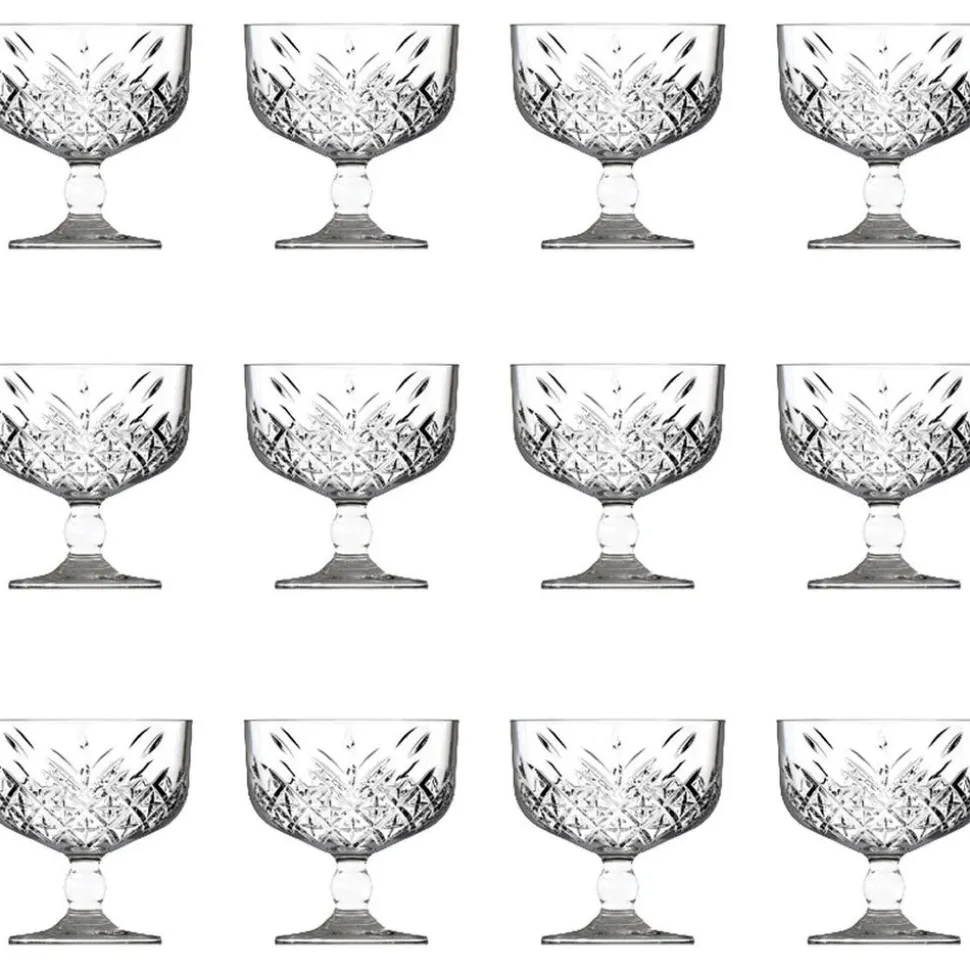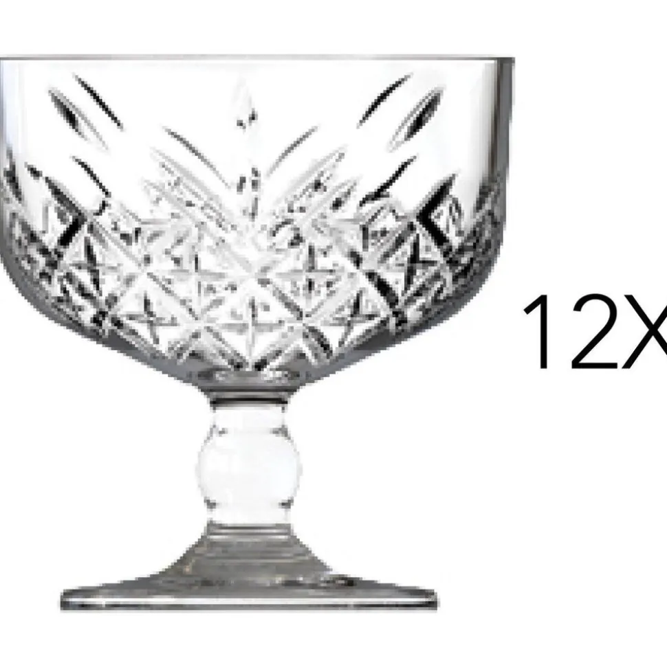 Deze prachtige Timeless ijscoupes zijn geschikt voor iedere afsluiting van een diner. Of je nu kiest voor ijs, een mousse sorbet. Deze Timeless ijscoupes zijn altijd het juiste glas! En ook een cocktail zal deze glazen perfect staan! Deze glazen maken met hun opvallende gehoekte glasbewerking en korte vrouwelijke steel ieder dessert tot een waar feestje! Deze elegante coupes zijn gemaakt van extreem sterk glas en zijn perfect voor een feestje en dagelijks gebruik. En na gebruik kunnen deze coupes gereinigd worden in de vaatwasmachine.Â