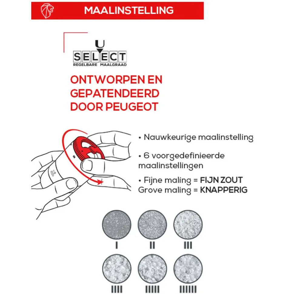 Uitgerust met het nieuwe Peugeot zoutmechanisme, van zirconium, een materiaal met een uitzonderlijke hardheid, maakt Maestro zout het mogelijk om Zout Glace te verkrijgen, een maling met een extreme fijnheid, en te genieten van alle geneugten van zout terwijl de hoeveelheid en de nadelige effecten worden beperkt.