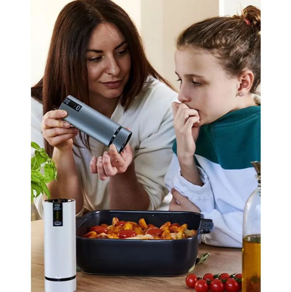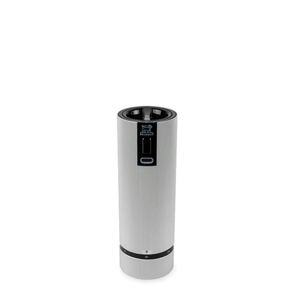 Het compacte ontwerp en de ribbels van de elektrische pepermolen Line beloven een optimale grip en dus een intuïtief gebruik in de keuken. Dankzij de eenvoudige, ingenieuze opening en het trechtervormige reservoir is vullen kinderspel. De nauwkeurige u’Select-regelaar is de kers op de taart. De afstellingsring in de voet van de molen heeft een maalgraad van 1 tot 6. Hij zorgt ervoor dat de peper altijd regelmatig is gemalen, welke grootte je ook verkiest. De elektrische Line-molen is nu al het perfecte geschenk, voor elke gelegenheid!