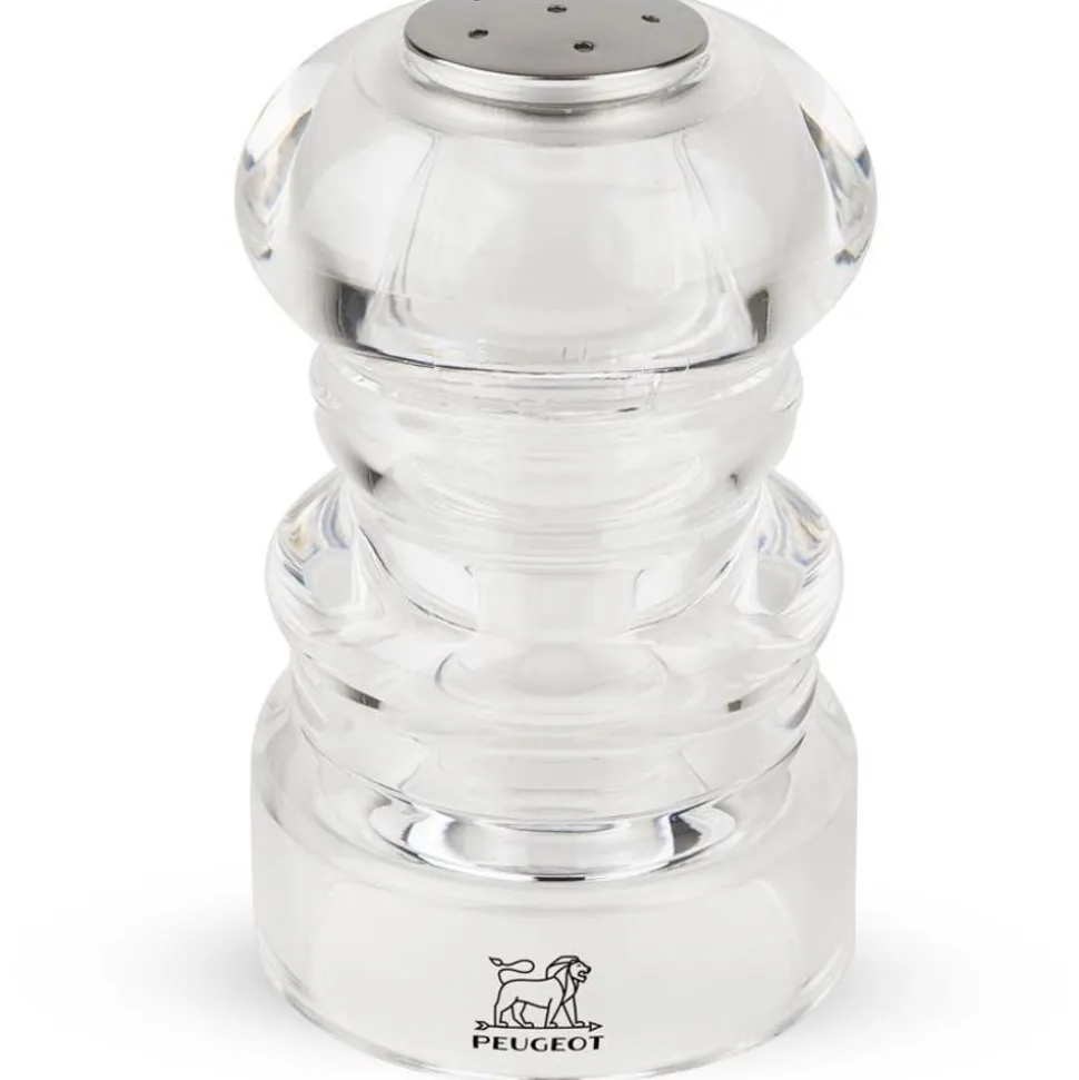 De Peugeot zoutmolen van de collectie Nancy in zijn versie 9 cm onderscheidt zich door zijn transparantie en zijn ergonomie. Volledig gerealiseerd uit acryl, onthult hij de witte kleur van het zout dat klaar is om te malen. Bovenop zijn kop laat een instelbare knop toe om de maalgraad aan te passen aan de functie van de schotels, van zeer fijn om de smaak van een schotel subtiel te kruiden tot veel grover als begeleiding van een gegrild stuk vlees.
