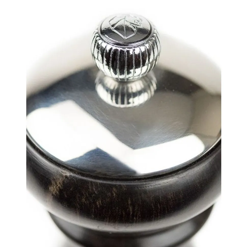 De zwart gelakte zoutmolen Paris Icône 18 cm herziet op een hedendaagse manier de traditionele molen Paris, het meest emblematische model van Peugeot gecreëerd in 1987. De zwart gelakte body van deze manuele zoutmolen draagt een sublieme kap uit schitterend inox. Een geraffineerde en ultra trendy combinatie waarmee u met plezier de tafel zult decoreren.