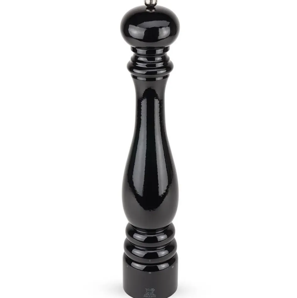De Peugeot pepermolen uit de collectie Paris, de onbetwiste referentie van zowel de grote chefs als de fijnproevers, verenigt de klassieke vorm, de gepatenteerde innovatie u’Select voor een instelbare maalgraad en iconische kleuren. Ondanks de evolutie van materialen, technieken en het esthetisch ideaal, bewaart de pepermolen Paris toch zijn oorspronkelijke efficiëntie, zijn betrouwbaarheid en zijn doel: alle aromatische diversiteit en intensiteit uit de pepers halen en een uitzonderlijke zintuiglijke en smakelijke beleving bieden. De zwartgelakte pepermolen Paris u’Select naturel 40 cm belichaamt perfect dit idee. Hij zal met zijn indrukwekkende grootte van 40 cm een zeer bijzondere plaats innemen in uw keuken.