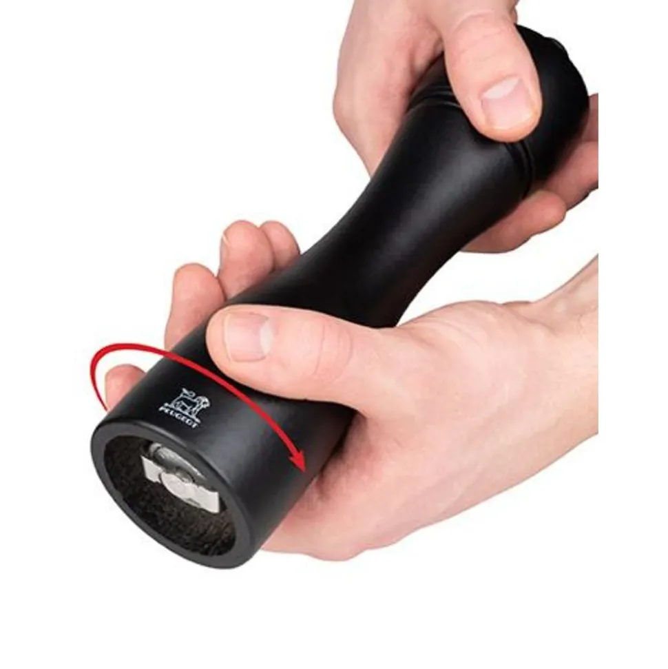 In zijn versie 20 cm, toont de Peugeot pepermolen Tahiti een slank en vrouwelijk silhouet. Zijn zwarte tint, voorbehouden aan peper, geeft hem nog meer charme.
