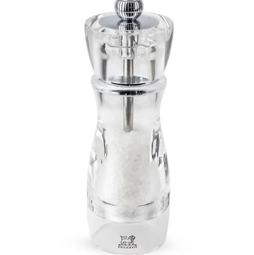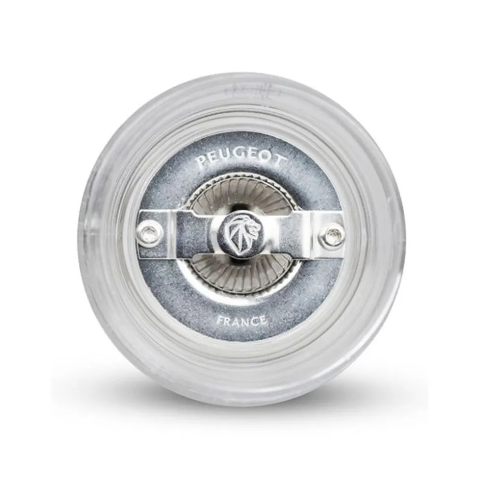 De transparante body uit acryl van de manuele zoutmolen Vittel 16 cm draagt een schitterende ring uit metaal die zijn grootte op een elegante manier onderstreept. De schitterende knop op de zoutmolen VIttel voegt een bijzondere charme toe aan zijn silhouet. Deze knop vergemakkelijkt het gebruik, omdat u hiermee de maalgraad naar uw wens kunt aanpassen: draai sterker aan om een fijnere maalgraad te bekomen. Het Peugeot maalgraad die in deze transparante molen voorzien is, heeft een onbeperkte garantie.