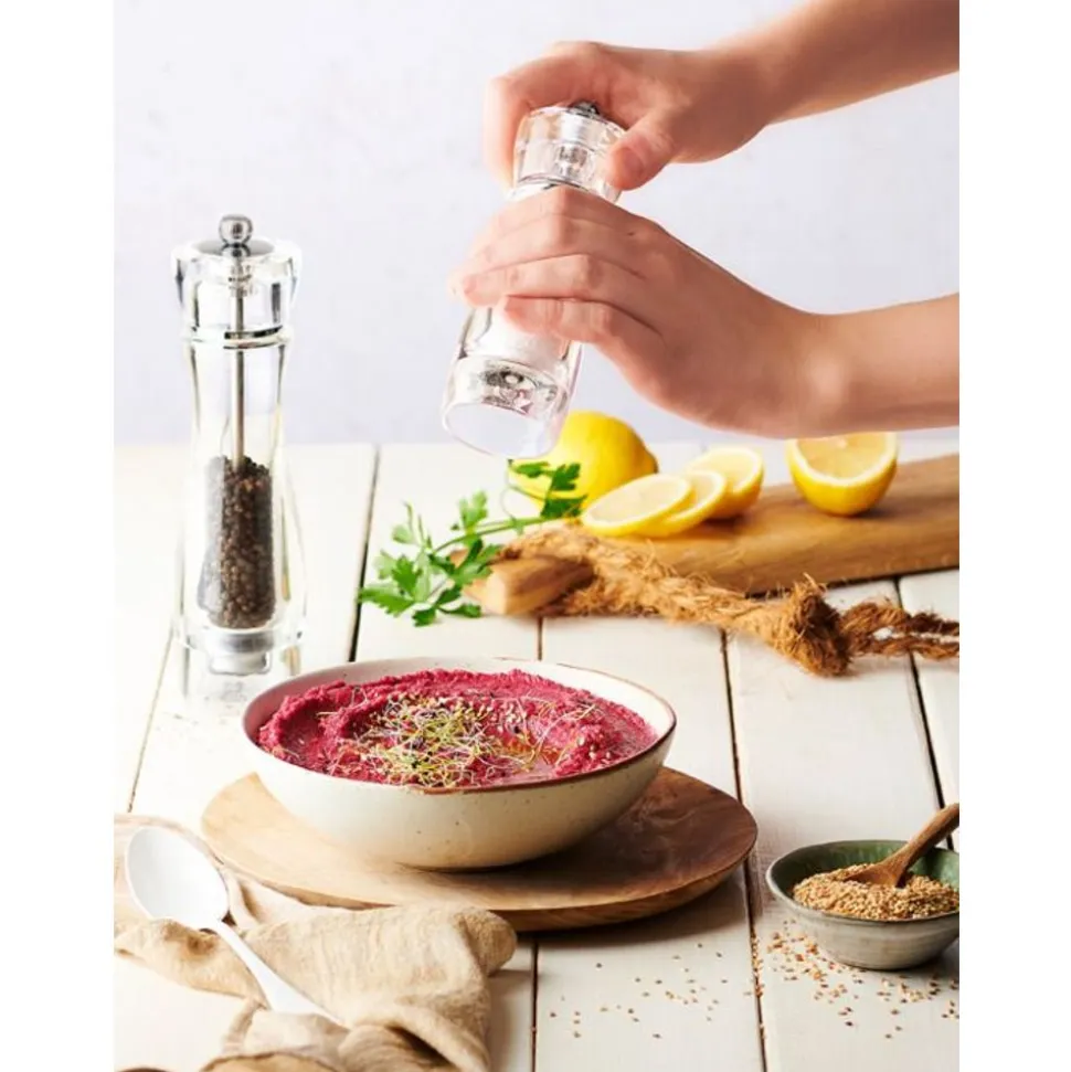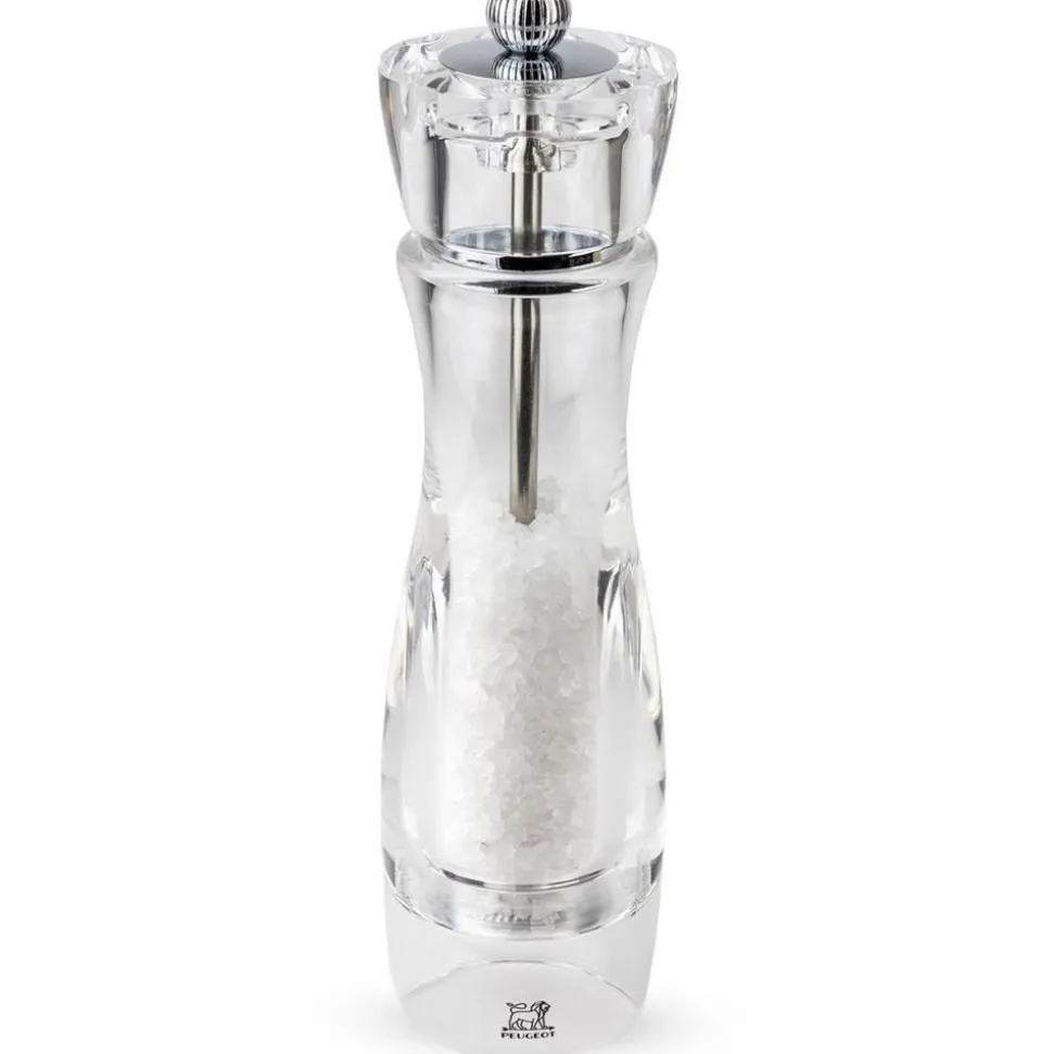 De zoutmolen Vittel, volledig transparant met een mooi rank silhouet, laat de zoutkristallen zien die hij bevat en ook zijn vulgraad. Deze molen is uitgerust met een stalen Peugeot-maalwerk met onbeperkte garantie. Het biedt de mogelijkheid om de maalgraad in te stellen dankzij zijn draaiknop (draai de knop wat vaster voor een fijnere maalgraad). Deze molen Vittel zal makkelijk passen bij uw mooie hedendaagse tafels.
