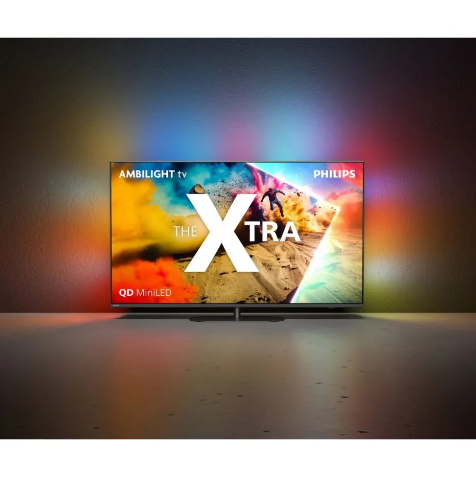 De Xtra heeft een geïntegreerd 4.1 surround-sound luidsprekersysteem en onze IntelliSound-engine. Geluid komt uit de zijkanten en de onderkant en de TV kan met behulp van AI de instellingen optimaliseren voor wat u kijkt of speelt. U geniet van een geweldige, meeslepende ervaring met een diepe bas, heldere stemmen en een echt gevoel van hoogte.