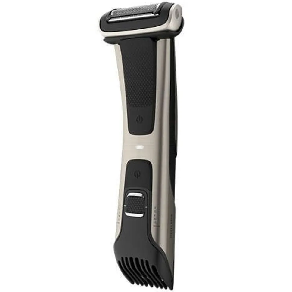 Levert een comfortabel en kort resultaat onder de douche en daarbuiten. De bodygroomer is volledig waterbestendig, dus u kunt het apparaat gewoon schoonspoelen als u klaar bent. Bij langer haar werkt de trimmer mogelijk beter op droog haar.