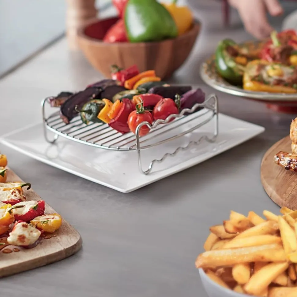 Met deze geweldige feestbeestkit voor uw Philips Airfryer kunt u een lekker en gezond feest geven met al uw favoriete feestsnack. Haal alles uit de Airfryer met het dubellaagse accessoire en de voedselscheider.