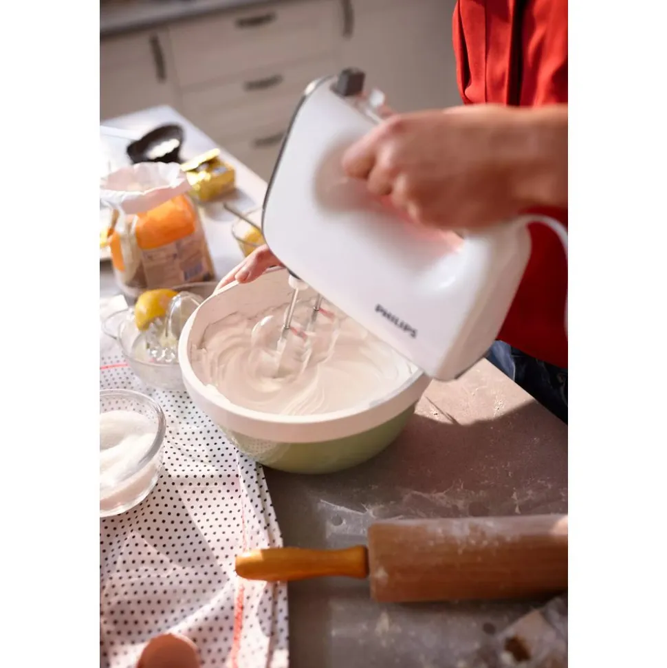 Met de Philips-mixer maakt u heerlijke luchtige cakes en brood voor uw gezin. Luchtige, kegelvormige kloppers zorgen voor kortere kloptijd en glad cakebeslag. Met de krachtige motor van 450 W komt u moeiteloos door het taaiste deeg.