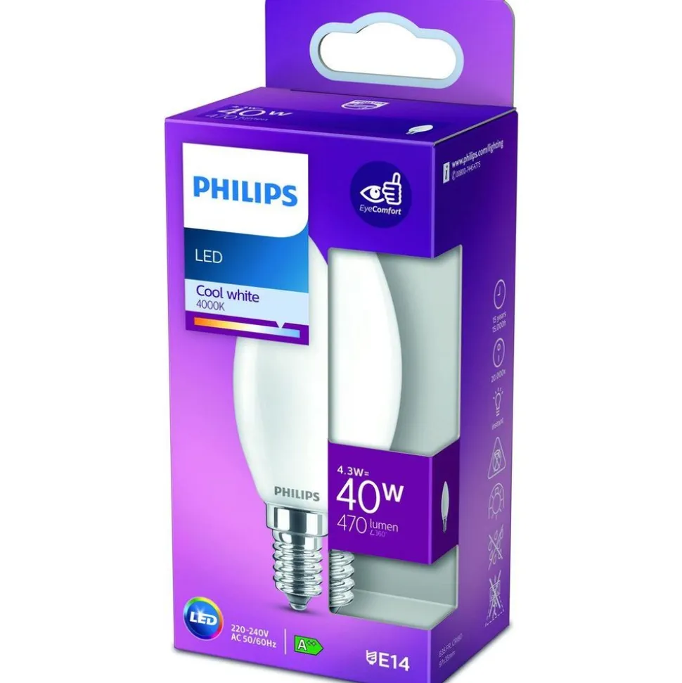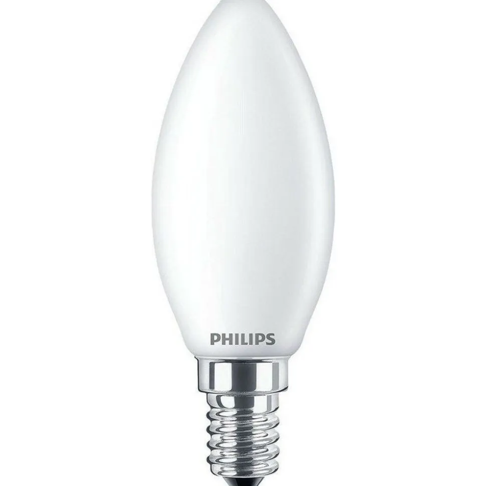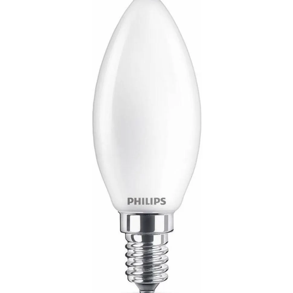 Matte LED-kaarslampen van Philips geven een mooi zacht lichteffect en gaan uitzonderlijk lang mee. Deze lamp past perfect bij kroonluchters met kleine fittingen (E14).