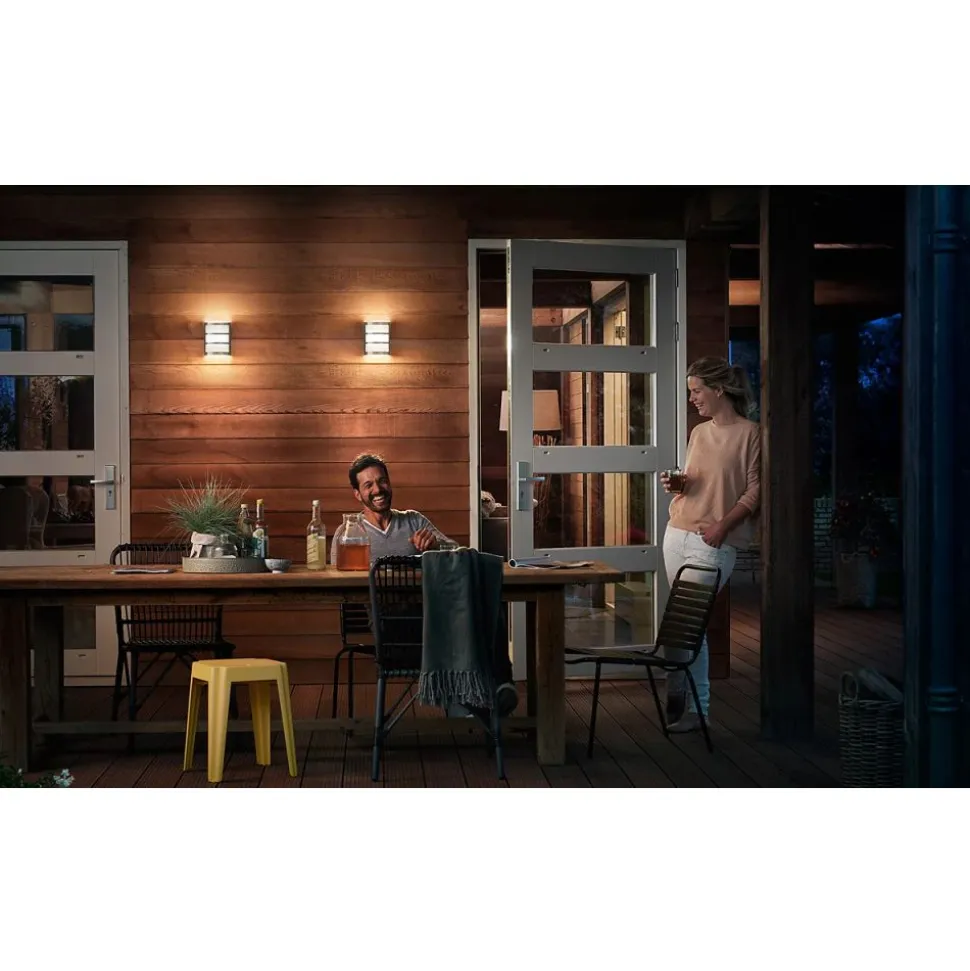 Deze Philips-buitenlamp is speciaal ontworpen voor vochtige buitenomgevingen. Hij is grondig getest om zijn waterbestendigheid te garanderen. Het IP-niveau wordt beschreven door twee cijfers: de eerste verwijst naar het beschermingsniveau tegen stof, de tweede tegen water. Deze buitenlamp is ontworpen met IP44: hij is beschermd tegen spatwater. Dit product wordt het meest gebruikt en is ideaal voor algemeen gebruik buitenshuis.