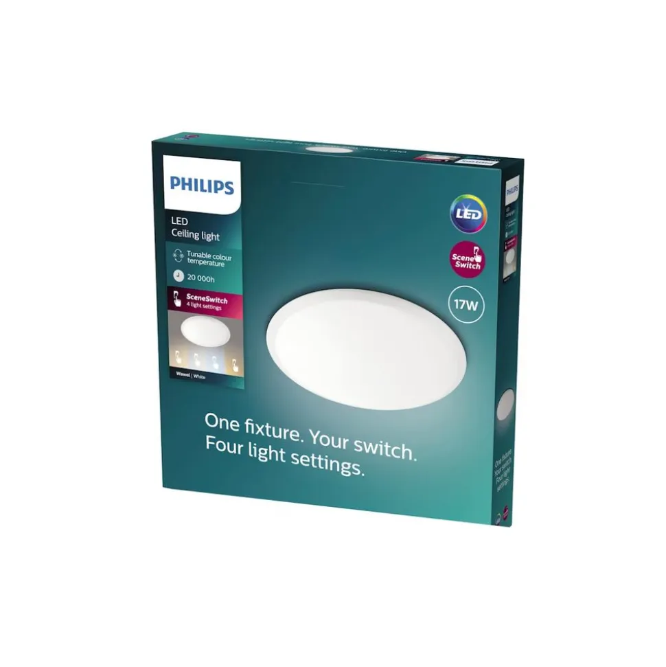 De Philips myLiving WAWEL LED-plafondlamp heeft een geïntegreerde LED-lichtbron die de lichtstroom en verlichtingsuniformiteit optimaliseert. U kunt de helderheid stap voor stap regelen, afhankelijk van uw stemming, en profiteren van de handige registratie van aanpassingen.