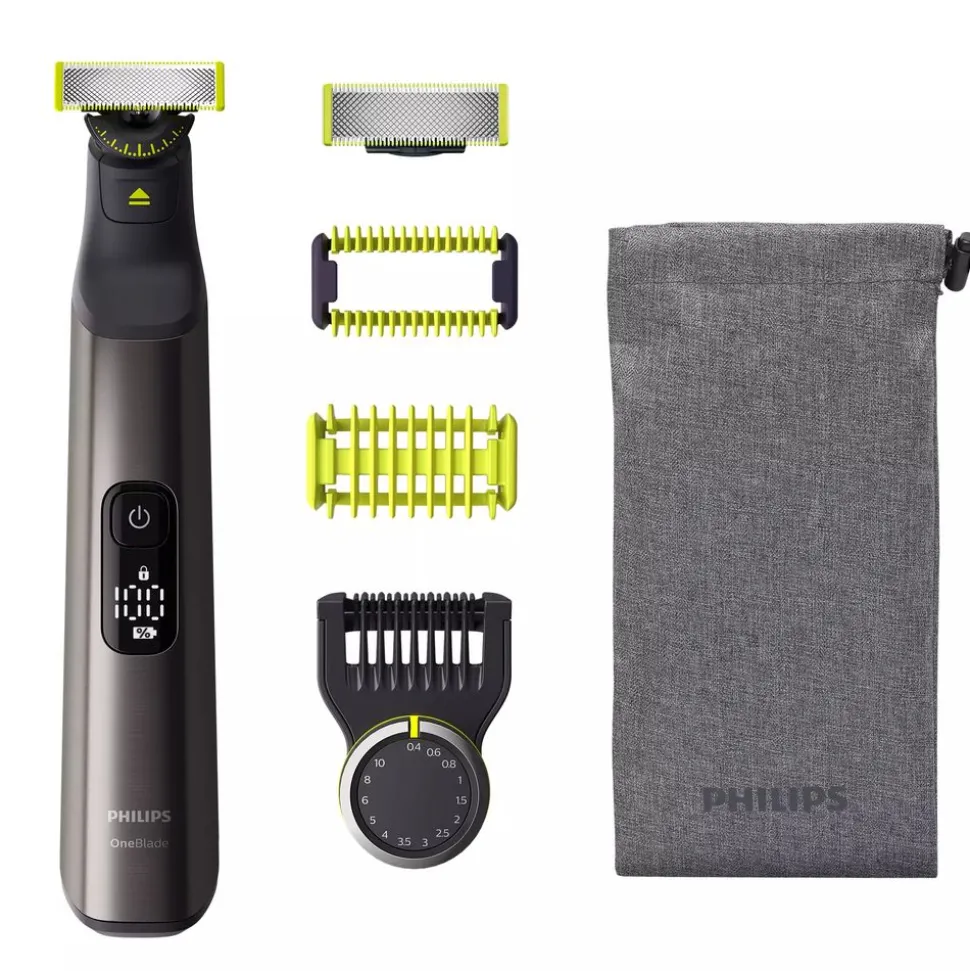 Met de Philips OneBlade Pro 360 Face + Body trim, scheer en style je moeiteloos gezichts- én lichaamshaar van elke lengte. Nu met flexibele 360 Blade voor meer comfort met minder bewegingen*. Inclusief precisietrimkam met 14 lengtestanden, lichaamstrimkam en huidbeschermingskap voor extra bescherming op gevoelige gebieden. Creëer makkelijk en snel jouw eigen stijl met Philips OneBlade Pro 360.