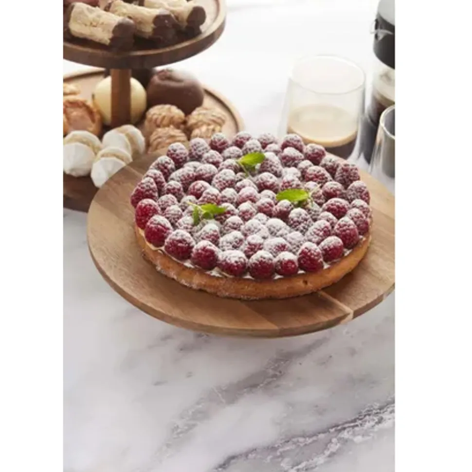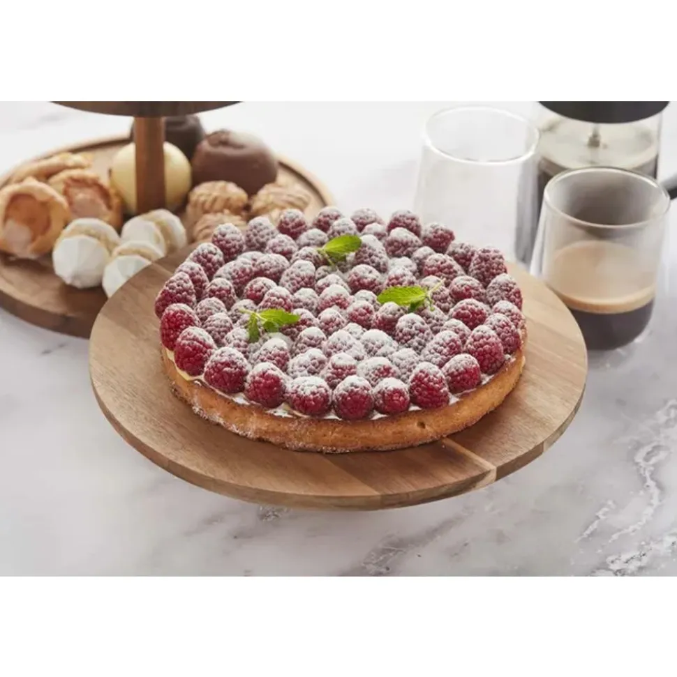 Point-Virgule Taartschotel op voet uit acaciahout ø 32cm H 75cm FSC®