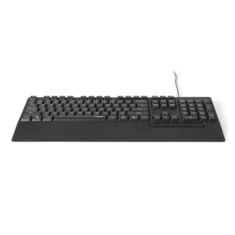 Eén vorm past iedereen. Dankzij het slimme ontwerp met polsrust en comfortabele vorm kunt u extra comfortabel typen, zelfs urenlang. Het toetsenbord biedt ook een stille type-ervaring.