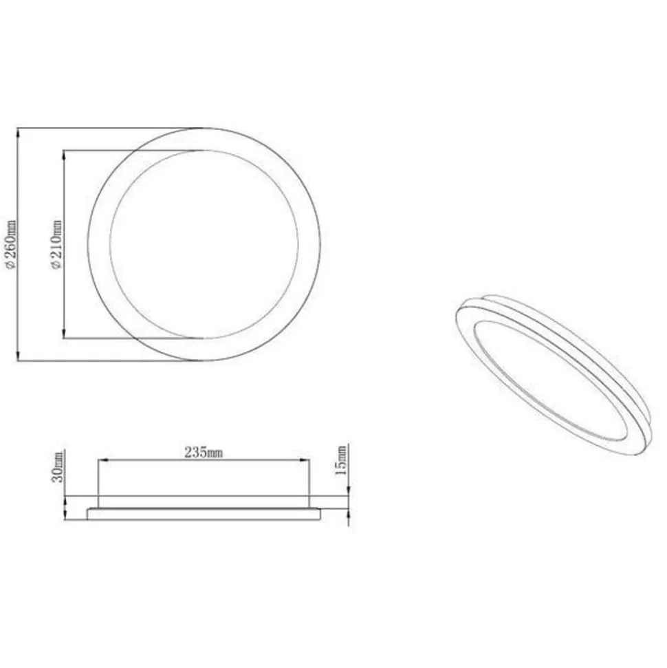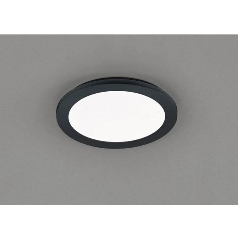 Camillus wand- of plafondlamp, inclusief lichtbron 1 x LED 15W max 230V, 3000K (warm wit), 1350lm, CRi>80, IP44, mat zwart, dimbaar via switchdimmer (niet extern dimbaar). Afmetingen: Ø260x30mm.
