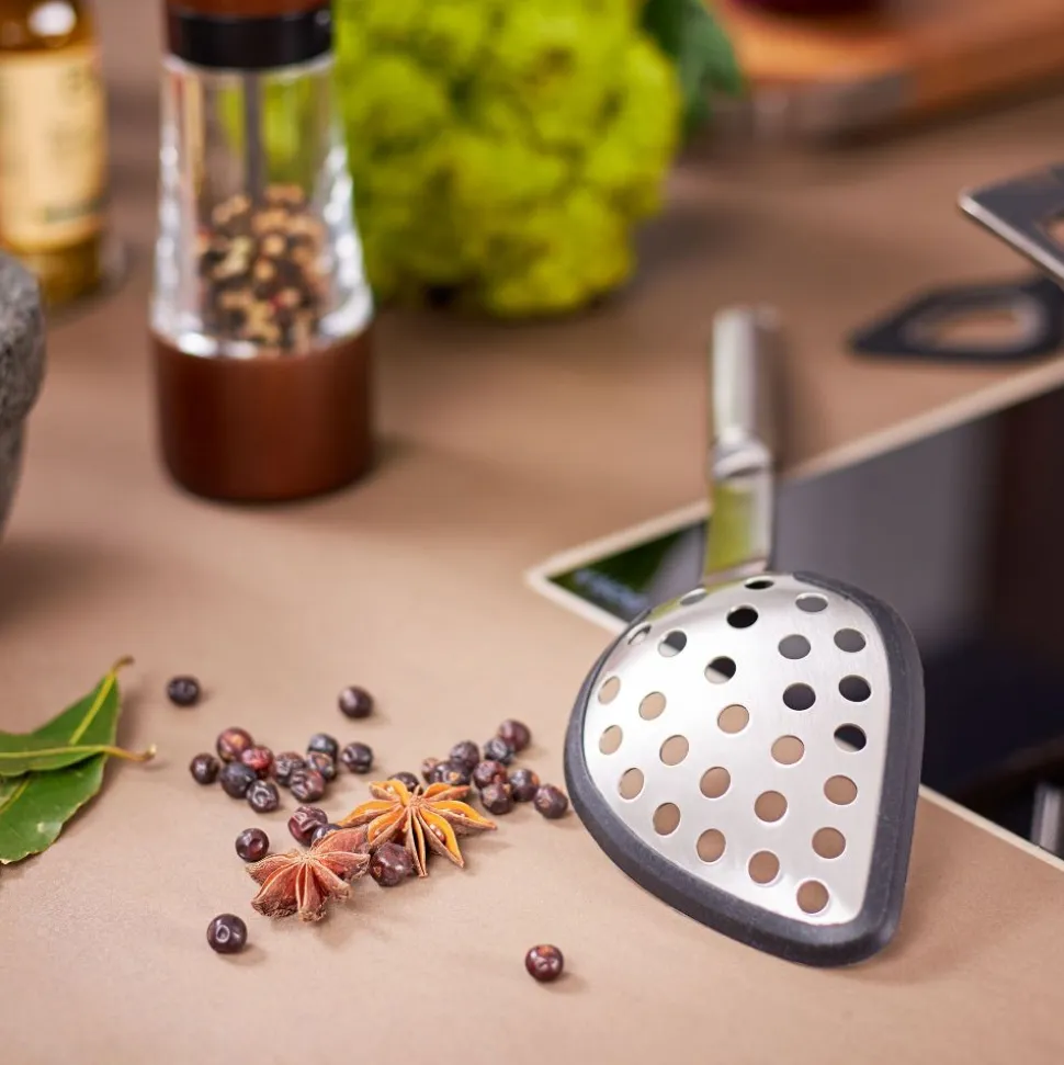 Voor het bedruipen en portioneren van voedsel in de oven of potten en pannen. Ideaal voor gebruik in gecoate pannen. Hittebestendig tot 220 °C/428 °F. Vaatwasserbestendig. Duurzame verbinding van roestvrij staal en siliconen.