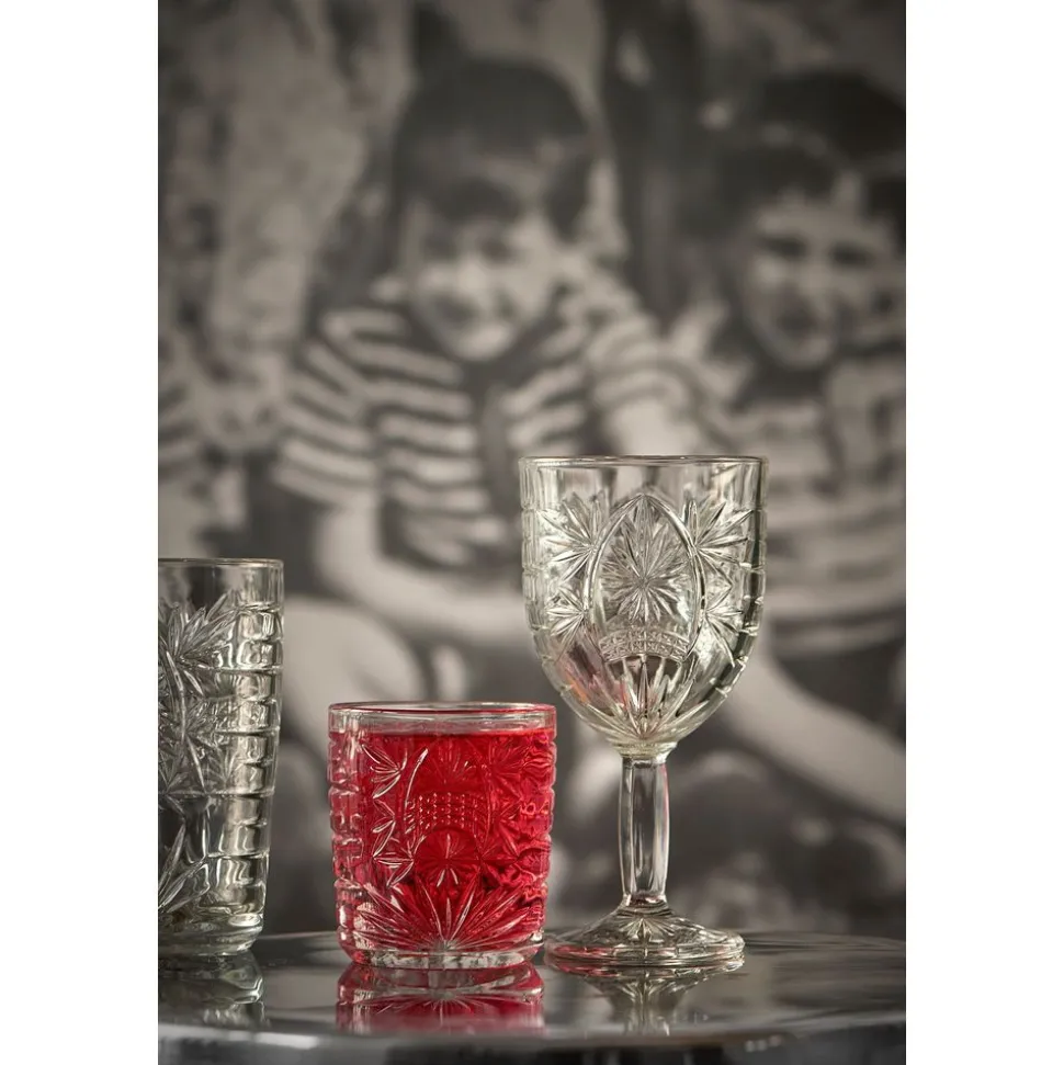 Stevig vintage rocks of waterglas in geperst glas geschikt voor intensief gebruik in bars en restaurants.