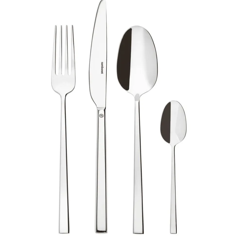 - Tafelset voor 6 personen bestaande uit 6 tafelvorken, 6 tafellepels, 6 tafelmessen en 6 theelepels. Collectie alleen in sets verkrijgbaar (geen los bestek).