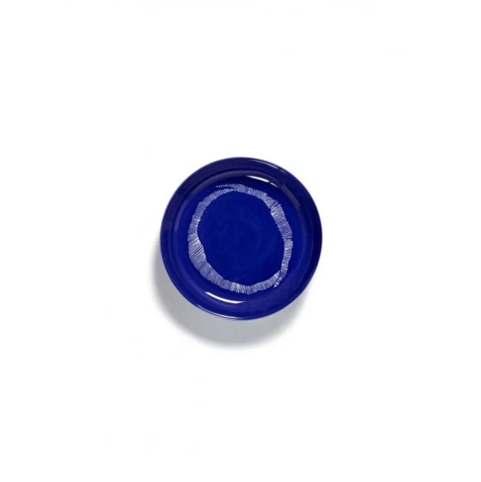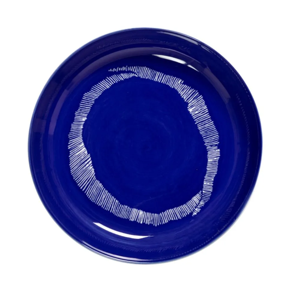 Dit donkerblauwe diner bord met witte O-vormige penseelstreek uit de FEAST-collectie van Yotam Ottolenghi is mede ontworpen door Italiaans kunstenaar Ivo Bisignano.