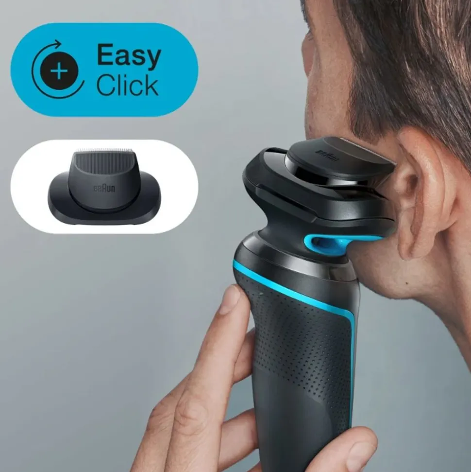 Een eenvoudige, gladde scheerbeurt: de 3 flexibele scheerbladen van dit elektrische scheerapparaat passen zich aan je gezichtscontouren aan terwijl het EasyClean-systeem zorgt voor een snelle en eenvoudige reiniging, zonder dat de scheerkop hoeft te worden verwijderd.
