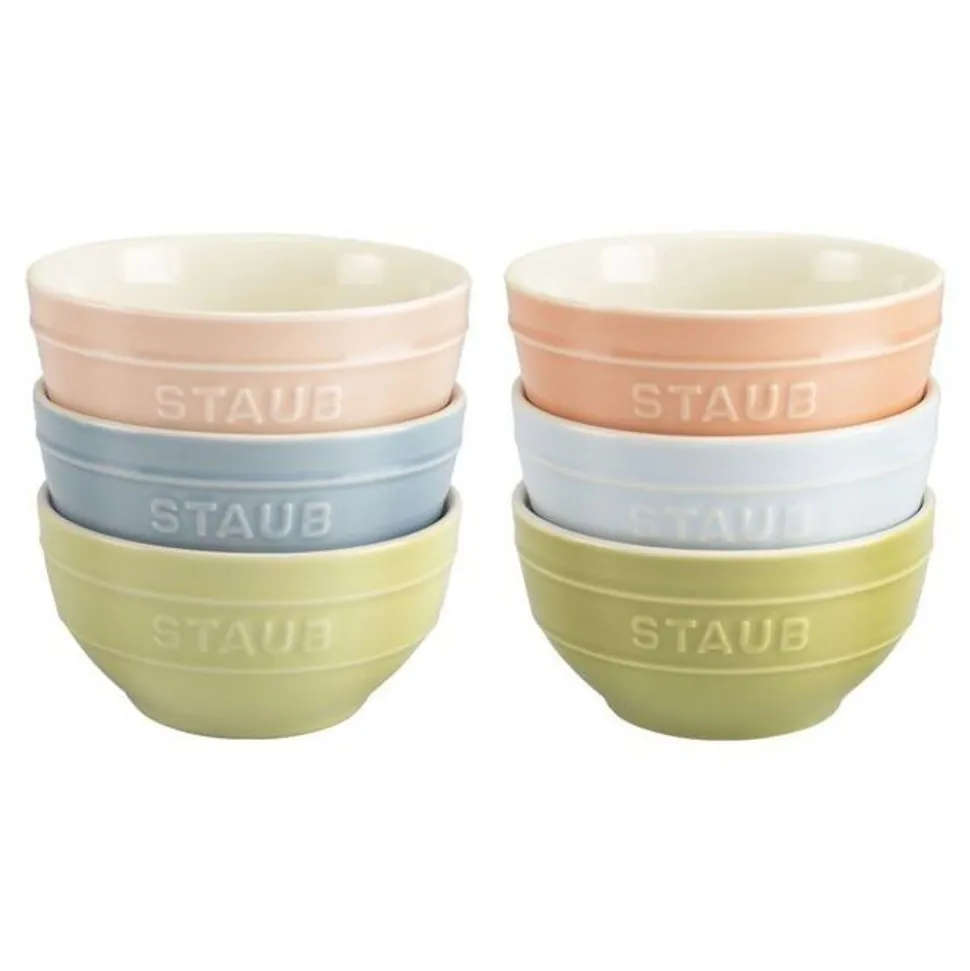 Het is moeilijk om de macaron te weerstaan, een echte Franse klassieker! Met zijn knapperige meringue en zachte kern betovert hij zelfs de allerliefsten onder ons. Banketbakkers concurreren in vindingrijkheid om ons steeds meer gevarieerde smaken te bieden. Maar het zijn vooral de pastelkleuren van de macaron die ons vandaag inspireren voor onze collectie van 6 keramische kommen. De roze, blauwe en groene tinten combineren harmonieus en brengen leven op uw tafel. Elke gast hoeft alleen nog maar zijn favoriete kleur te kiezen.