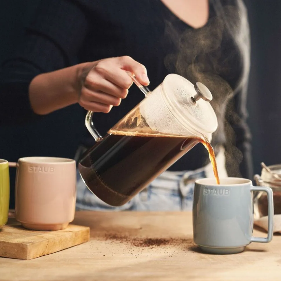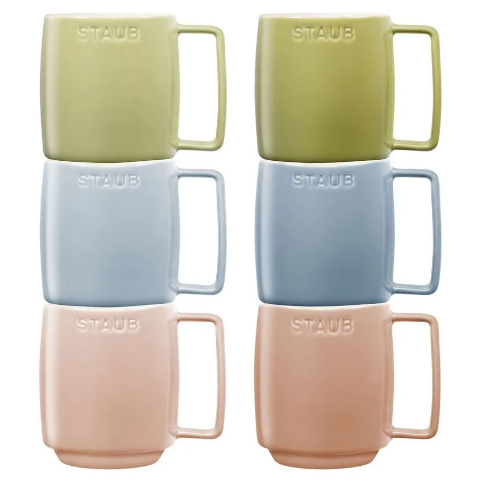 Ze zeggen dat je niet iedereen tevreden kunt stellen, maar je kunt het zeker proberen met deze set keramische mokken in zes pasteltinten. Laat je familie of gasten hun favoriete kleur én hun favoriete warme drank kiezen: Franse koffie, sterke thee met melk, romige cappuccino, geurige kruidenthee of warme chocolademelk – de mogelijkheden zijn eindeloos. Gelukkig zijn de keramische mokken robuust en gemakkelijk schoon te maken: gewoon in de vaatwasser en klaar voor de volgende pauze. En als je ze echt even niet nodig hebt, kun je ze stapelen om ze op te bergen. De bijpassende tinten in licht- en donkerroze, groen en blauw zorgen zelfs voor een harmonieuze presentatie in je kast, of wanneer je ze met de ergonomische handgrepen aan een kopjesrek hangt.