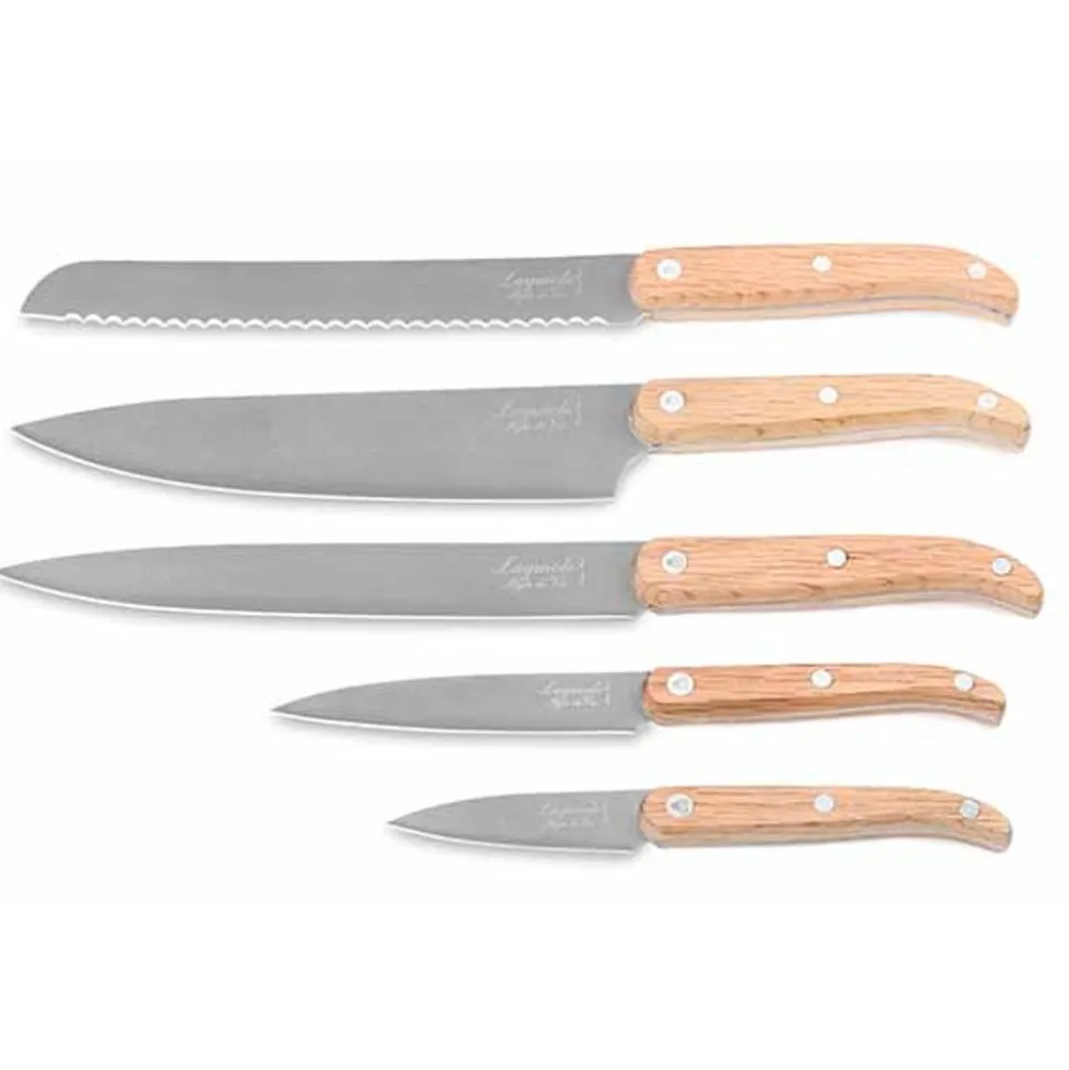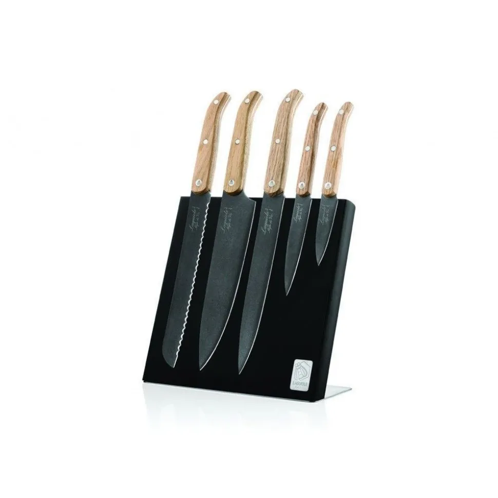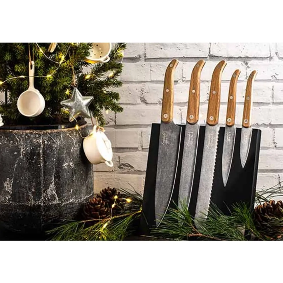 Style de Vie Innovation Line Messenset 5pcs Oak Stonewash Met Magnetisch Messenblok