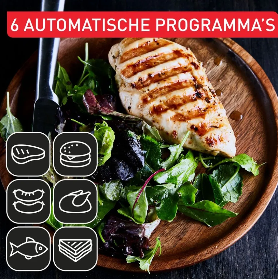 - Een intelligente grill die automatisch de bereidingstijd aanpast voor perfecte grillresultaten, van rood tot doorbakken