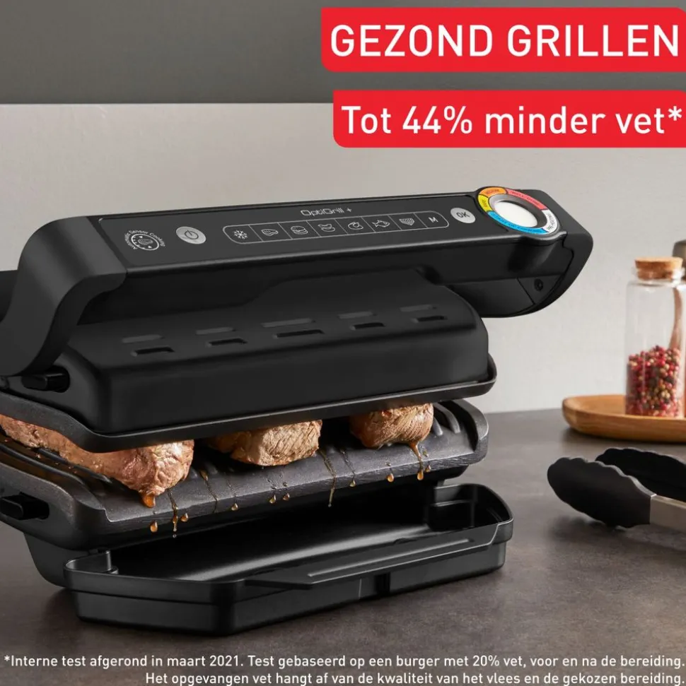 - Gezonder grillen: tot 44% minder vet,* dankzij schuine platen die het vet afvoeren