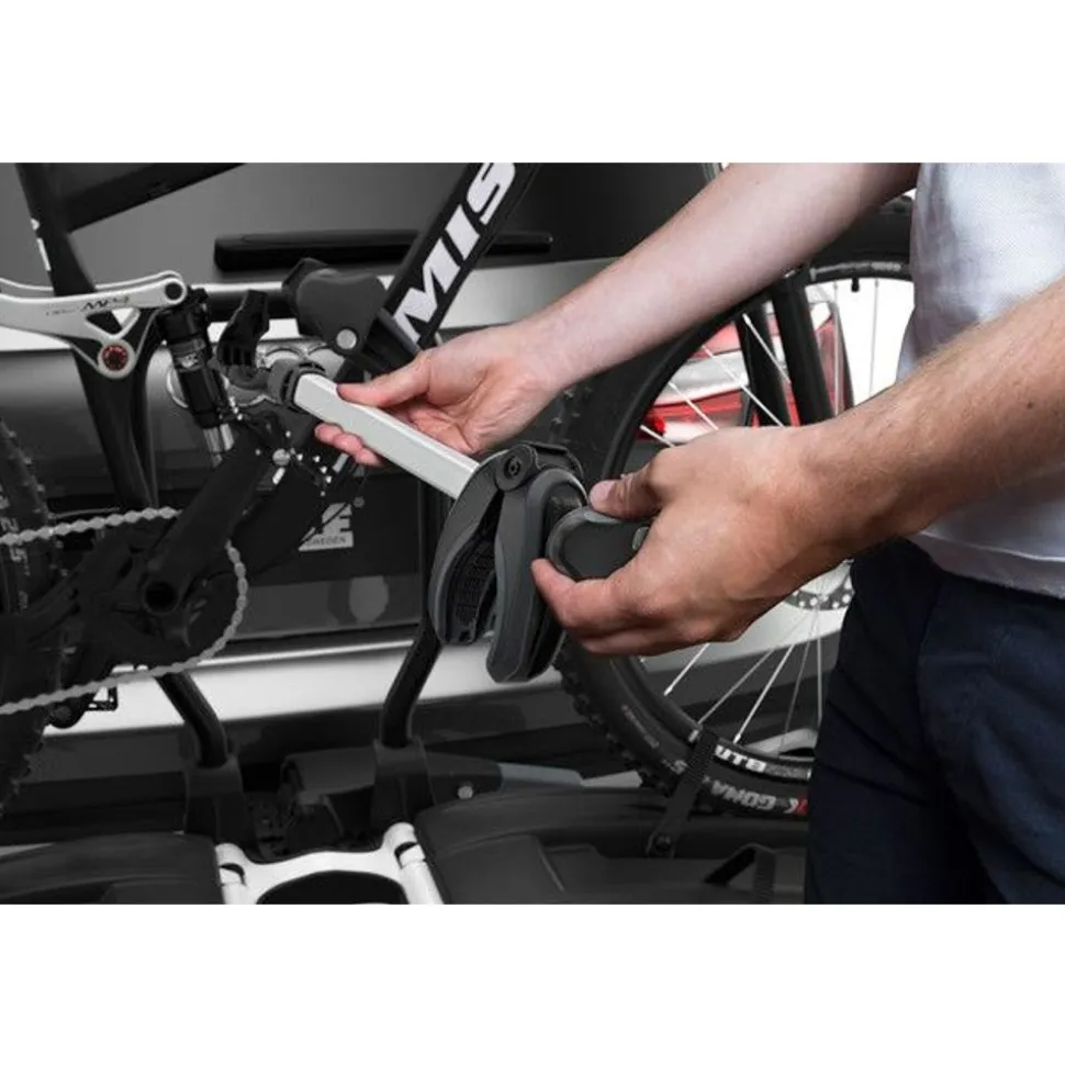 - Gemakkelijk plaatsen van fietsen door afneembare fietsarmen met de vergrendelbare Thule AcuTight-knoppen met koppelbegrenzer die klikken wanneer de optimale grip is bereikt