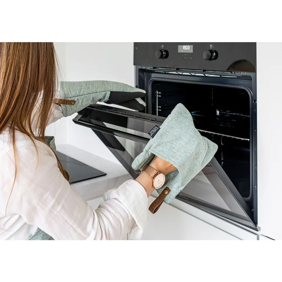Een échte aanrader voor in de keuken is deze set van twee hittebestendige pannenlappen. Ideaal om tijdens het koken hete pannen en deksels op te pakken. Het sublieme design met hoogwaardige afwerking zorgt ervoor dat jij kan stralen in de keuken. Een bijpassende keukenschort, ovenwant, gripper & keukenhanddoek vind je ook in ons assortiment.