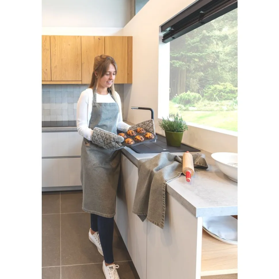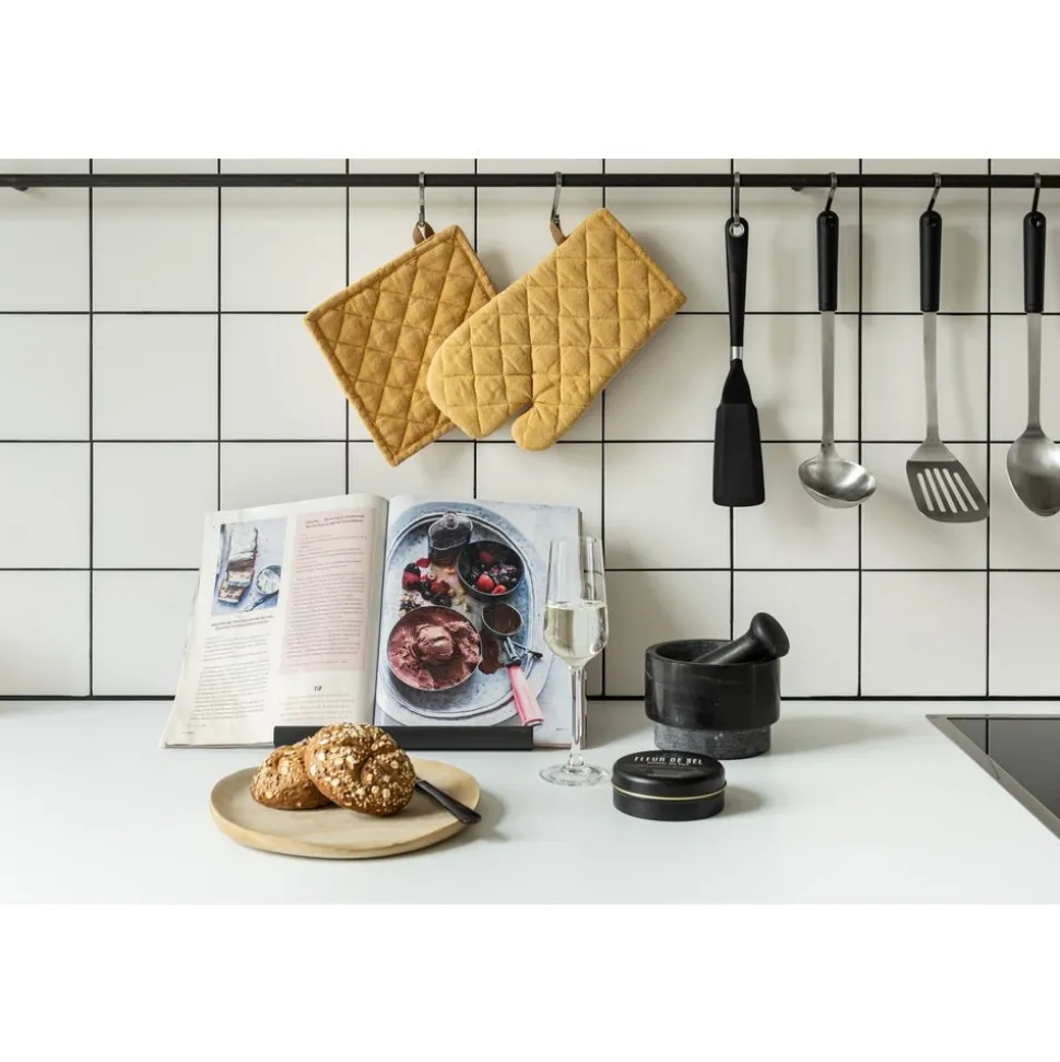 Is jouw heerlijk gerecht klaar en wil je deze uit de oven halen? Dit doe je veilig én modieus met deze ovenwant gemaakt uit 100% katoen. De ovenwant heeft een ruitvormige patroon bestikking en zorgt voor een retro look & feel. De ultieme bescherming voor jouw handen tegen de hitte van een ovenschaal of pan! Leuk in combinatie met een bijpassende keukenschort, pannenlap & keukenhanddoek.