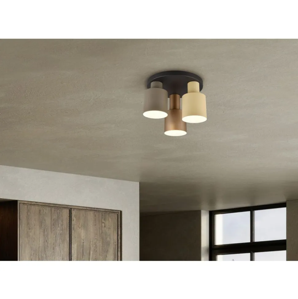 Het combineren van lichtkappen in verschillende kleuren en hoogtes trekt de aandacht en maakt de lamp tot een bijzonder designelement in je huis – net als de lampen uit de AGUDO-serie. De drielichts plafondlamp straalt pure gezelligheid en minimalistische esthetiek uit dankzij de natuurlijke kleurstelling en het elegante design. In de slaapkamer of woonkamer verbetert de armatuur het ruimteklimaat met haar warme, natuurlijke uitstraling. De karakteristieke kleurencombinatie van gedempte natuurlijke kleuren en mat zwart geeft de armatuur stijl. De matte metalen afwerking van de lampenkappen rondt de armatuur perfect af en zorgt voor een elegante highlight. Het gebruik van LED lichtbronnen wordt aanbevolen voor energiebesparende verlichting. Deze vormen een ideaal alternatief voor conventionele halogeenlichtbronnen en bieden een hoge lichtkwaliteit en energiebesparingen tot 80%. Met LED lichtbronnen profiteert u ook van een lange levensduur en een lage warmteontwikkeling, terwijl het milieu wordt beschermd.