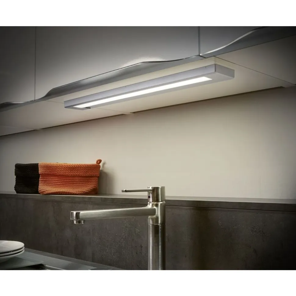 Een goed verlicht werkblad in de keuken is het allerbelangrijkste. Met de ALINO onderkastlamp voldoe je aan alle eisen. Met een breedte van 55 cm kan hij gemakkelijk onder elke kast worden gemonteerd en zorgt hij voor uitstekend licht in je keuken. Het licht kan worden in- en uitgeschakeld met de schakelaar. Het tijdloze titaniumkleurige ontwerp past perfect bij verschillende inrichtingsstijlen. Daarnaast beschikt de lamp over een moderne ledtechnologie die zich onderscheidt met een hoge lichtkwaliteit en energie-efficiëntie. In vergelijking met gewone halogeenlampen kan tot 80% bespaard worden op de energiekosten. Bovendien hebben ledlampen een lange levensduur, produceren minder warmte en zijn milieuvriendelijk.
