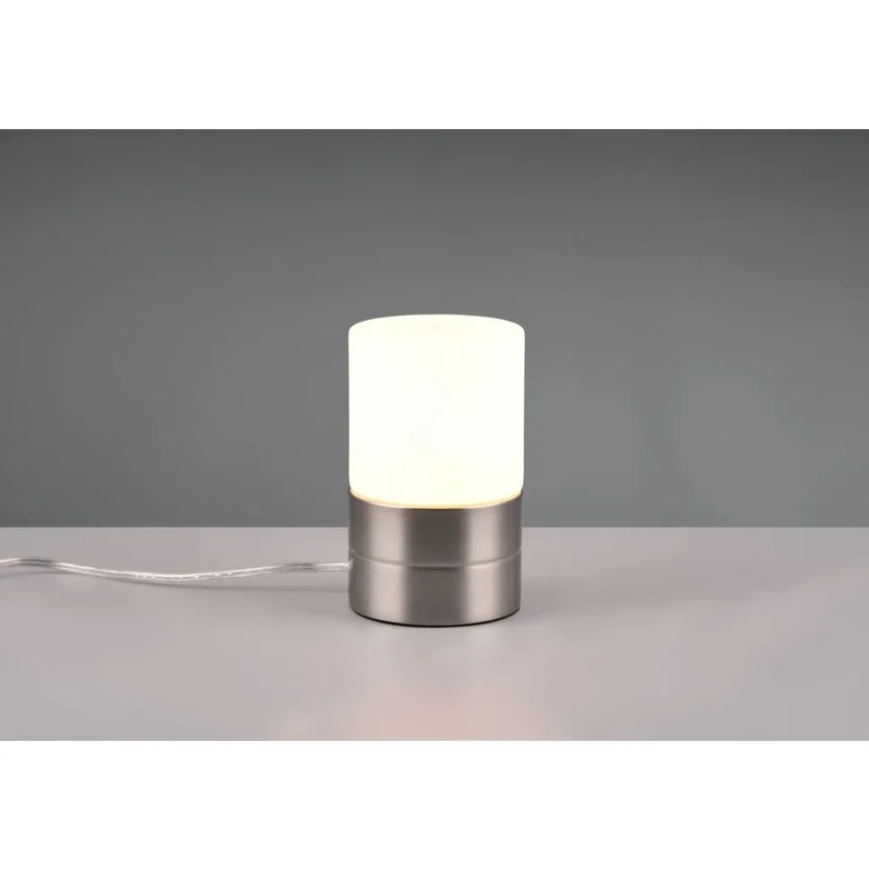 Met een praktische aanraakfunctie voor in- en uitschakelen kan de kleine ARY II tafellamp overal worden neergezet! Naast het bed of op de commode geplaatst, zorgt de moderne tafellamp voor een discreet, aangenaam licht. De witte glazen kap vormt een mooi contrast met het matte nikkel ontwerp van de lamp. Voor een energiebesparende verlichting is het gebruik van een ledlichtbron aanbevolen. Deze zijn een optimaal alternatief voor gewone halogeenlampen en staan voor een hoge lichtkwaliteit en een energiebesparing van tot 80%. Bovendien profiteert u bij ledlichtbronnen van een lange levensduur, een geringe warmteontwikkeling en spaart tegelijkertijd het milieu.