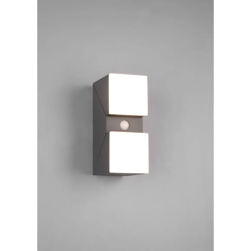 Modern, innovatief design ontmoet veelzijdige functionaliteit – de buitenlamp AVON als blikvanger in uw buitenzone. Dankzij de zwenkbare lichtelementen kan de lichtval individueel ingesteld worden naargelang uw behoeften. Of u de lamp met haar up- en downverlichting nu gebruikt voor de decoratieve lichtsfeer op uw gevel of als perfecte verlichting van uw ingang, de AVON zet zichzelf vakkundig in scène. Met behulp van de geïntegreerde sensor schakelt de lamp bij beweging automatisch over op 100% lichtintensiteit. In het donker en wanneer er geen beweging is, brandt een oriëntatielicht met een lichtintensiteit van 10%. Daarnaast is deze moderne lamp door haar IP-waarde van 54 bijzonder weerbestendig. De muurlamp maakt indruk met haar behuizing van antracietkleurig drukgegoten aluminium en een lampenkap van witte kunststof. Daarnaast beschikt de lamp over een moderne ledtechnologie die zich onderscheidt met een hoge lichtkwaliteit en energie-efficiëntie. In vergelijking met gewone halogeenlampen kan tot 80% bespaard worden op de energiekosten. Bovendien hebben ledlampen een lange levensduur, produceren minder warmte en zijn milieuvriendelijk.