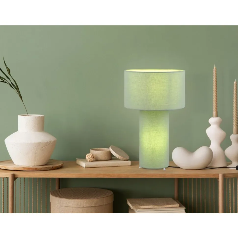 Lampen met stof stralen gezelligheid en warmte uit. De BALE tafellamp, die van de kap tot aan de voet van de lamp in stof is gewikkeld, wordt gekenmerkt door een rustig verlichtingsconcept en nodigt uit tot gezellig binnen zitten. Bij het bed of op een klein bijzettafeltje naast de fauteuil dient BALE als een stijlvol decoratief element dat een aangename sfeer creëert met zijn zachte lichtuitstraling. Het licht kan ook worden in- en uitgeschakeld met een praktische snoerschakelaar. Het moderne ontwerp en het eenkleurige design in pistachegroen zorgt voor stijlvolle kleuraccenten met een opvallend karakter. Het gebruik van LED lichtbronnen wordt aanbevolen voor energiebesparende verlichting. Deze vormen een ideaal alternatief voor conventionele halogeenlichtbronnen en bieden een hoge lichtkwaliteit en energiebesparingen tot 80%. Met LED lichtbronnen profiteert u ook van een lange levensduur en een lage warmteontwikkeling, terwijl het milieu wordt beschermd.