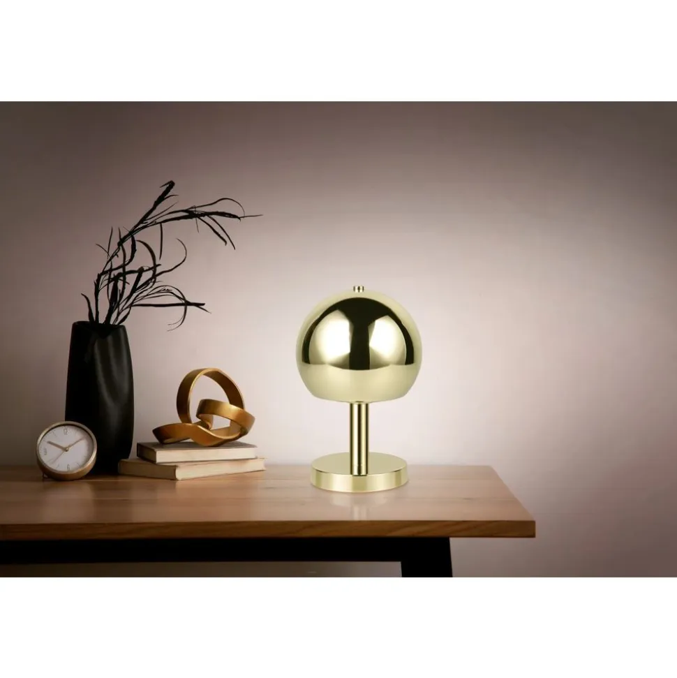 De trendy tafellamp BOCCIA is een charmante blikvanger die zeker zal inspireren. De kap, die doet denken aan een paddenstoelvormige kop en het licht zacht en indirect verspreidt in de gezellige ruimte, maakt ook indruk met zijn glanzende oppervlak. Een ideaal decoratief element met een verlichtingsfunctie op ladekasten of bijzettafels! Het opvallende ontwerp in gepolijst messing geeft je interieur een modern tintje en verfraait het stijlvol. Het gebruik van LED lichtbronnen wordt aanbevolen voor energiebesparende verlichting. Deze vormen een ideaal alternatief voor conventionele halogeenlichtbronnen en bieden een hoge lichtkwaliteit en energiebesparingen tot 80%. Met LED lichtbronnen profiteert u ook van een lange levensduur en een lage warmteontwikkeling, terwijl het milieu wordt beschermd.