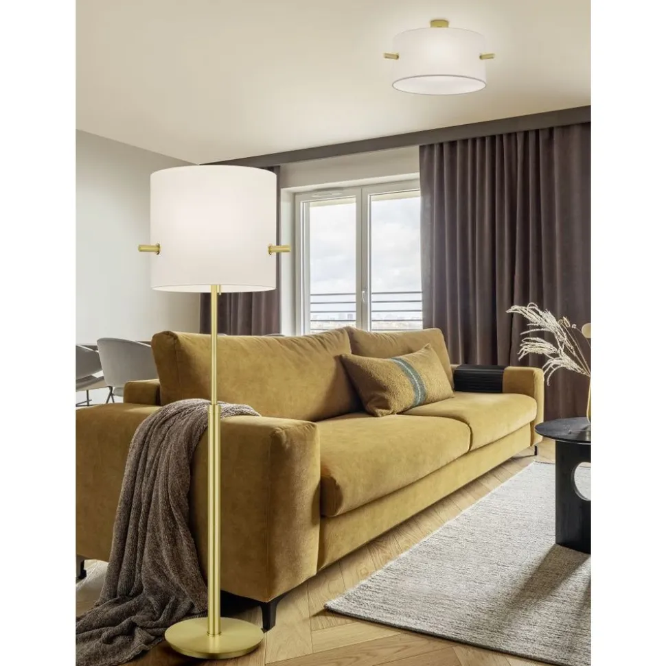 CAMDEN straalt exclusiviteit en grandeur uit. De imposante kappen van geweven stof maken de serie automatisch tot het middelpunt van elke kamer. In combinatie met opvallende metalen elementen is deze serie DE perfecte verlichting! De stoffen kap zorgt ook voor een bijzonder zacht en gezellig licht dat uitnodigt om je goed te voelen. Een praktisch hoogtepunt van deze lamp is de hoogteverstelling, waardoor de vloerlamp op elk moment kan worden aangepast. De trekschakelaar zorgt er ook voor dat de lamp snel en gemakkelijk aan en uit kan worden geschakeld. Dankzij de smaakvolle kleurencombinatie van mat messing en wit creëert de lamp een stijlvolle en moderne omgeving. Voor een energiebesparende verlichting is het gebruik van een ledlichtbron aanbevolen. Deze zijn een optimaal alternatief voor gewone halogeenlampen en staan voor een hoge lichtkwaliteit en een energiebesparing van tot 80%. Bovendien profiteert u bij ledlichtbronnen van een lange levensduur, een geringe warmteontwikkeling en spaart tegelijkertijd het milieu.