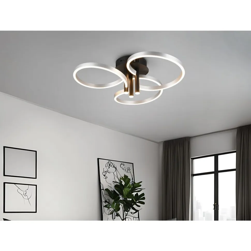 Het hoogtepunt van plafondlamp CARUSO is het unieke ontwerp. Drie elegant in elkaar verstrengelde ringen creĆ«ren een dynamische en toch harmonieuze look die onmiddellijk in het oog springt. De plafondlamp is echter niet alleen visueel aantrekkelijk, maar ook technisch indrukwekkend. De helderheid en lichtkleur kunnen geleidelijk worden aangepast met een conventionele lichtschakelaar, zodat de verlichting flexibel kan worden aangepast aan je behoeften en de gewenste stemming. Of het nu helder licht is om geconcentreerd te werken of gedimd licht voor een gezellige sfeer – met de CARUSO heb je altijd volledige controle over het licht. De combinatie van matzwart en aluminiumkleurige accenten geeft de lamp een moderne maar tijdloze stijl die moeiteloos kan worden geĆÆntegreerd in verschillende inrichtingsconcepten. De armatuur is ook voorzien van moderne LED-technologie, die wordt gekenmerkt door een hoge lichtkwaliteit en energie-efficiĆ«ntie. Vergeleken met conventionele halogeenlichtbronnen kan tot 80% op de energiekosten worden bespaard. LED lichtbronnen hebben ook een lange levensduur, produceren minder warmte en beschermen het milieu.