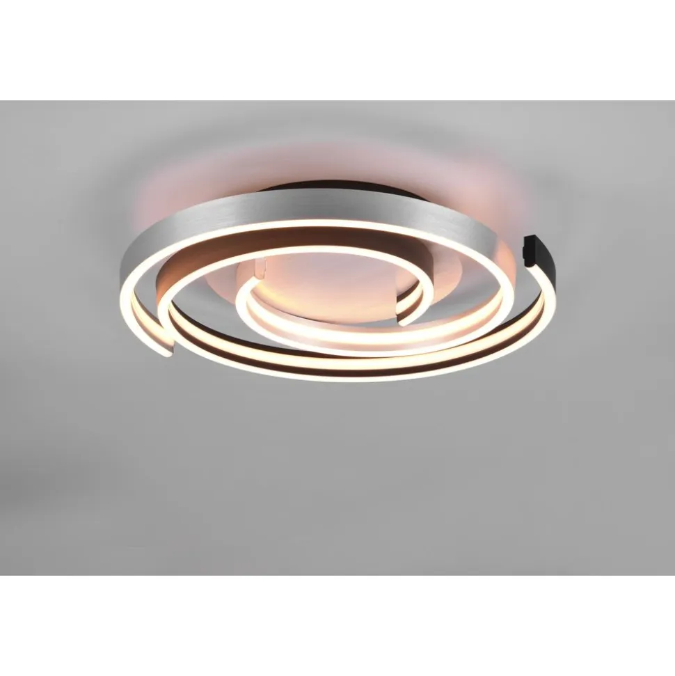De gebogen lijnen van de plafondlamp CAYA brengen elegantie en lichtheid in uw huis. Met zijn stijlvolle en moderne design past de lamp in verschillende inrichtingsstijlen en zorgt voor een gezellige sfeer. De lamp heeft een SWITCH-dimmer en dus kan de helderheid met een conventionele lichtschakelaar worden aangepast van 100% naar 50% en 25%. Bovendien kunnen er drie lichtkleuren (warm wit, neutraal wit en daglichtwit) via een schakelaar direct op de lamp worden ingesteld. Dankzij het moderne kleurenschema in geborsteld aluminium en mat zwart vindt de lamp in vele kleurconcepten een plekje. Daarnaast beschikt de lamp over een moderne ledtechnologie die zich onderscheidt met een hoge lichtkwaliteit en energie-efficiëntie. In vergelijking met gewone halogeenlampen kan tot 80% bespaard worden op de energiekosten. Daarnaast hebben ledlichtbronnen een lange levensduur, genereren minder warmte en zijn milieuvriendelijk.Â