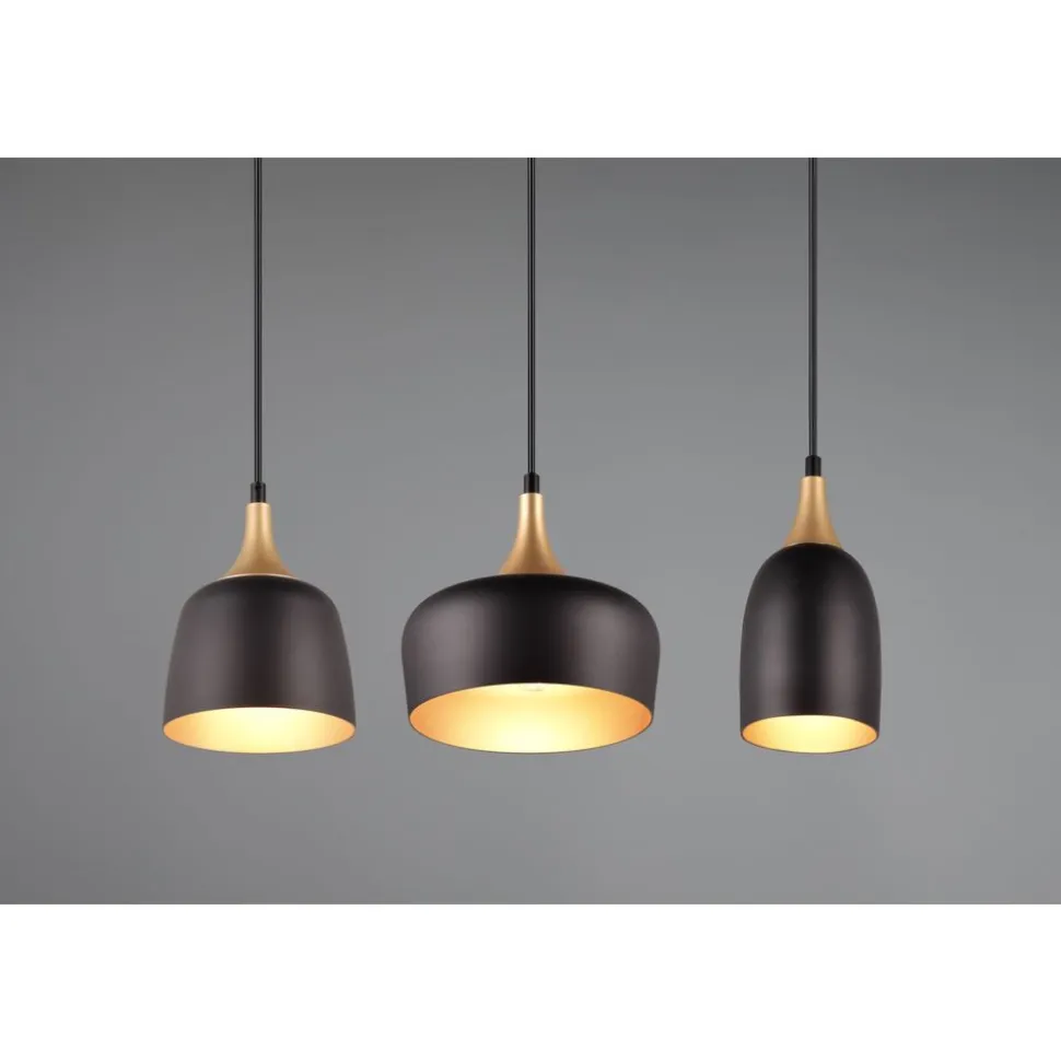 De CHIRAZ hanglamp in verfijnde loft chic! De gouden accenten van het armatuur breken de harde stijl van de industriƫle look en geven de CHIRAZ een verfijnde charme. De verschillende vormen en hoogtes van de drie kappen maken van de lamp een decoratief element met een sterk karakter, dat ieders aandacht trekt boven een eettafel of aanrecht. Het elegante metalen ontwerp in mat zwart en messing creƫert een sfeervolle ambiance en genereert de aandacht die het verdient binnen je vier muren. Het gebruik van LED lichtbronnen wordt aanbevolen voor energiebesparende verlichting. Deze vormen een ideaal alternatief voor conventionele halogeenlichtbronnen en bieden een hoge lichtkwaliteit en energiebesparingen tot 80%. Met LED lichtbronnen profiteert u ook van een lange levensduur en een lage warmteontwikkeling, terwijl het milieu wordt beschermd.