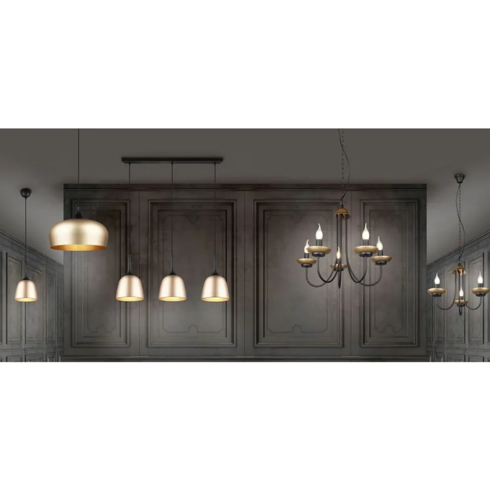 Heldere vorm, spannende kleur! De pendellampen van de serie CHIRON verspreiden elegantie en een heel bijzondere flair! De pendel bestaat uit aluminium en is uitstekend geschikt voor decoratieve, alsook praktische doeleinden. Ze komt bijzonder mooi uit boven de eettafel of in een ingangszone met een hoog plafond. De moderne kleurencombinatie van mat zwart en messing verfraait elke woonruimte op unieke wijze. Voor een energiebesparende verlichting is het gebruik van een ledlichtbron aanbevolen. Deze zijn een optimaal alternatief voor gewone halogeenlampen en staan voor een hoge lichtkwaliteit en een energiebesparing van tot 80%. Bovendien profiteert u bij ledlichtbronnen van een lange levensduur, een geringe warmteontwikkeling en spaart tegelijkertijd het milieu.