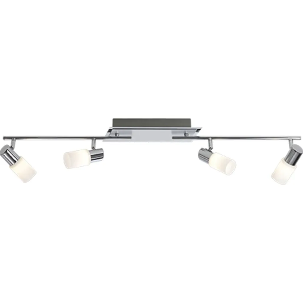 De CLAPTON LED bar maakt indruk met zijn verstelbare spotkoppen en de extra bevestigde gewrichten. Afhankelijk van het aantal spots kunnen ze worden gebruikt als decoratieve en oriëntatieverlichting of om de hele woonruimte te verlichten. Je kunt de beweegbare spots richten zoals je wilt. De lamp heeft een lengte van 94 cm. Dankzij de chromen metalen kleurstelling en het matwitte geveegde glas kan de bar naadloos worden geïntegreerd in talloze inrichtingsstijlen. Daarnaast beschikt de lamp over een moderne ledtechnologie die zich onderscheidt met een hoge lichtkwaliteit en energie-efficiëntie. In vergelijking met gewone halogeenlampen kan tot 80% bespaard worden op de energiekosten. Bovendien hebben ledlampen een lange levensduur, produceren minder warmte en zijn milieuvriendelijk.