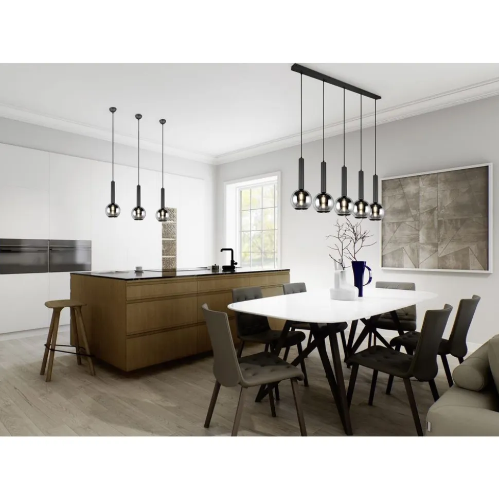 Tijdloos, strak en toch karakteristiek . De moderne hanglamp CLAYTON trekt iedereens aandacht door de combinatie van een elegante glazen kap en donker metaal. De ronde vorm van de glazen lampenkap geeft het licht op een bijzondere manier af aan de omgeving en schept zo een gezellige sfeer. Geplaatst boven de woonkamertafel of in het midden boven de eettafel, komt de lamp goed tot haar recht en creëert nieuwe favoriete plekjes in uw huis. Het bedampte chroomglas en mat zwart metaal passen zich moeiteloos aan elke woonstijl en kleurconcept aan en zijn eenvoudig te combineren. Voor een energiebesparende verlichting is het gebruik van een ledlichtbron aanbevolen. Deze zijn een optimaal alternatief voor gewone halogeenlampen en staan voor een hoge lichtkwaliteit en een energiebesparing van tot 80%. Bovendien profiteert u bij ledlichtbronnen van een lange levensduur, een geringe warmteontwikkeling en spaart tegelijkertijd het milieu.